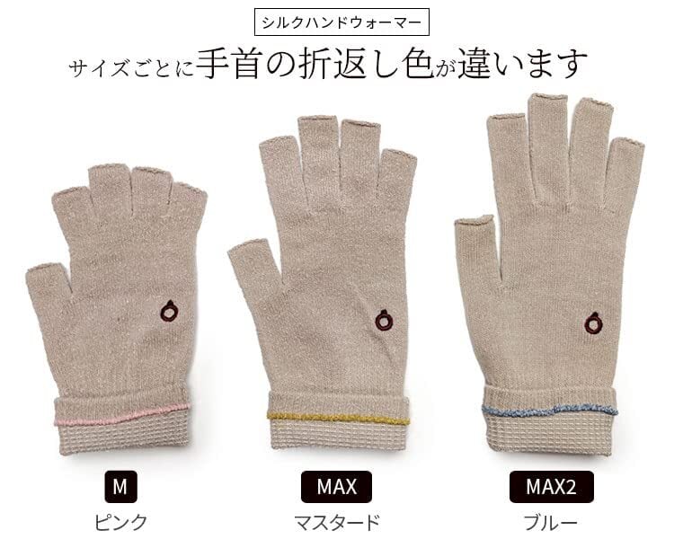 特徴:指先長めMAX・MAX2の2タイプ、手首が長くてあたたかいシルクのハンドウォーマー。良く伸縮し、手にフィットします。最初に少しきつく感じても徐々に手に馴染みます。洗濯すると一旦縮みますが、着用しているとフィット感が更にUPします。シルクは保温性だけでなく、吸湿性・放湿性に優れています。絹紡紬糸という糸を使用した編地はシルクっぽくない質感から好みが分かれます。使い続けると毛玉が目立ちます。上質シルクや綿タイプの方が見た目が綺麗です。