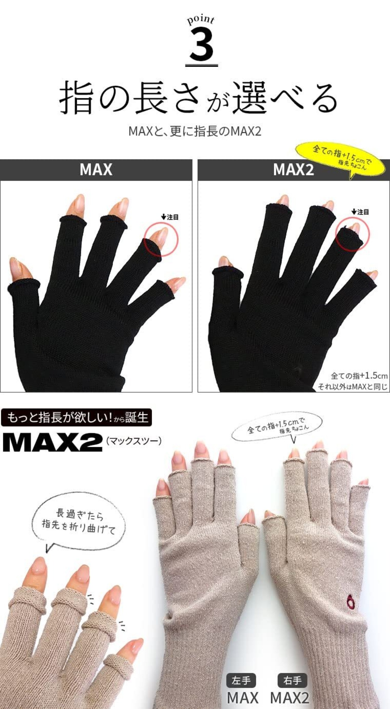 [841(ヤヨイ)] シルク ハンドウォーマー MAX (指長タイプ) スマホ 手袋 指なし 絹 日本製