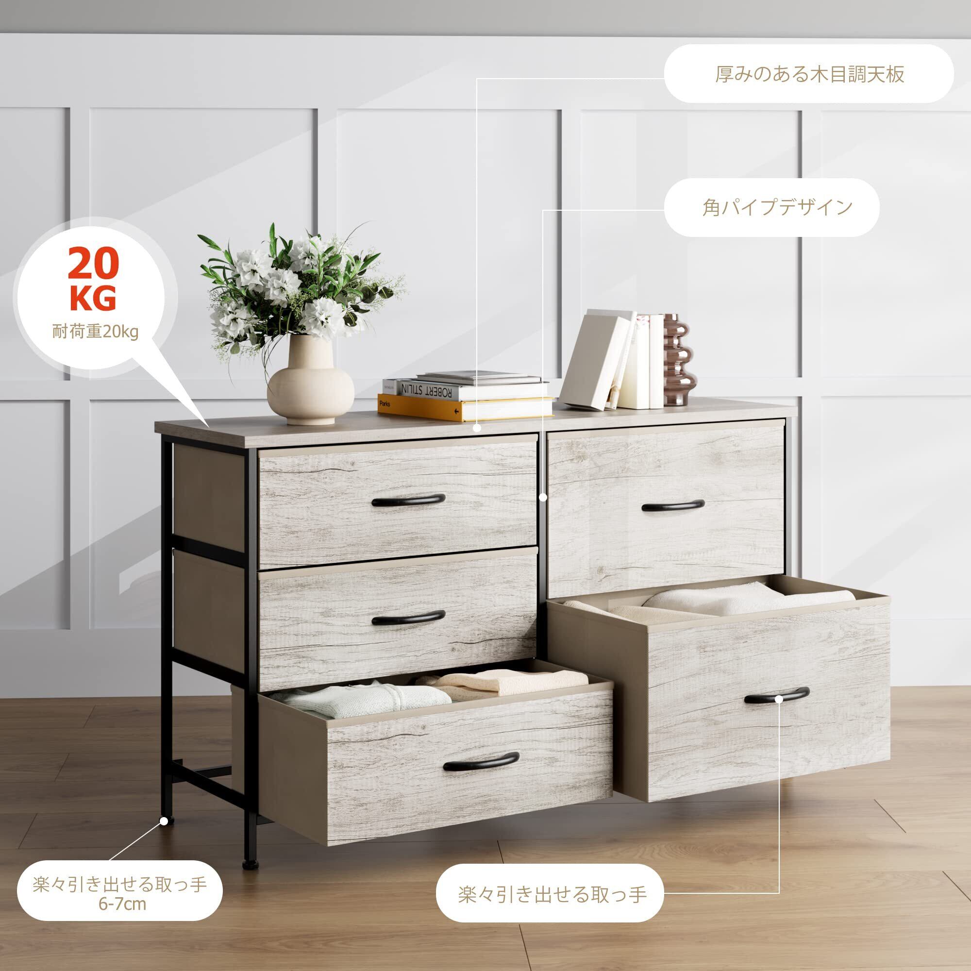 Nicehill チェスト タンス 収納チェスト オーガナイザー 収納ケース 衣類・キッズ・ベイビー用ワイドチェスト 衣類収納 木製天板 組立簡単 3段5杯(奥行き30㎝ x 幅100.0㎝ x 高さ61.0㎝)(ライトウッドグレイン)