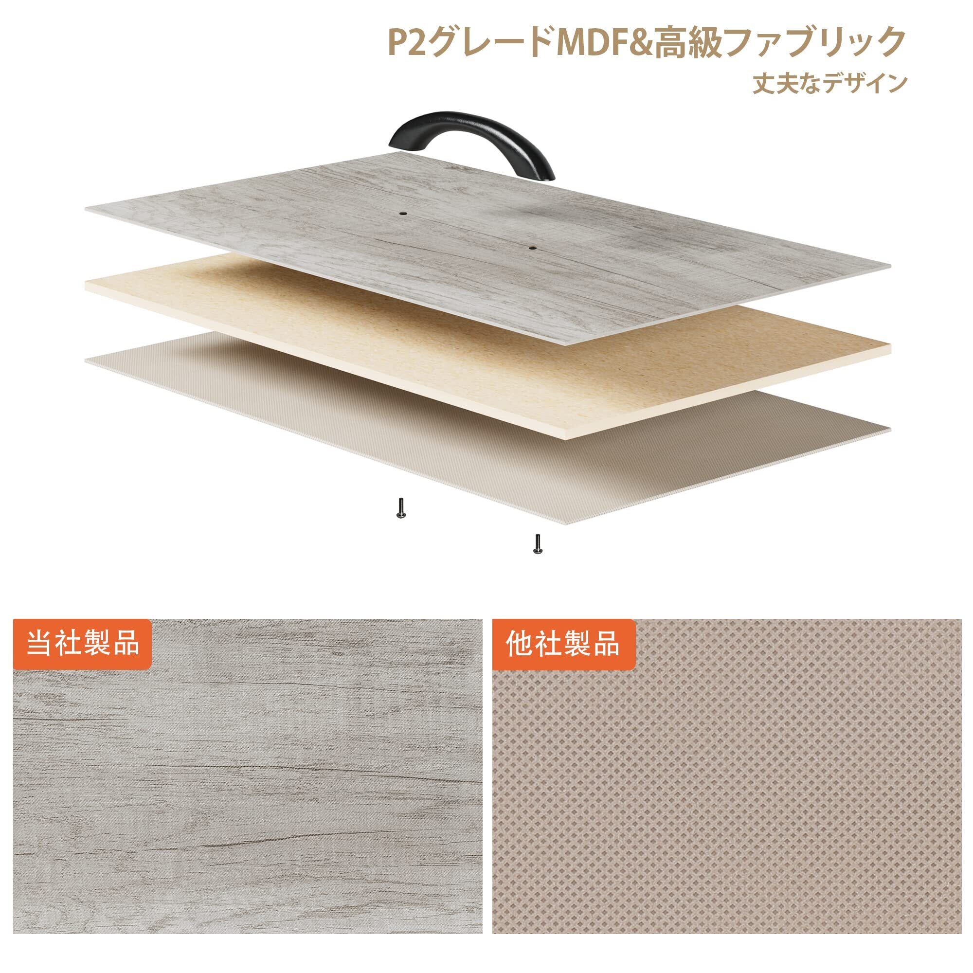 木製の天板はしっかりとした作りで、耐荷重にも優れています。引き出し部分はスムーズに開閉でき、取り出しやすさも考慮されていますので、毎日の使用にも安心です。
