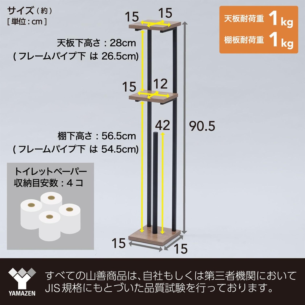 山善(YAMAZEN) ラック トイレットペーパー スタンド トイレ 収納 スリム 棚付き (スマホ置き/インテリア) トイレットペーパーホルダー 隙間収納 ストッカー 幅15×奥行15×高さ90.5cm 組立品 ダークブラウン/マットブラック RTPS-1515H(DBR3/MBK)