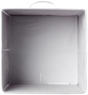 折りたたみ可能な収納ボックスデザイン。使用しないときはフラットにたためるので、省スペースに収納可能。