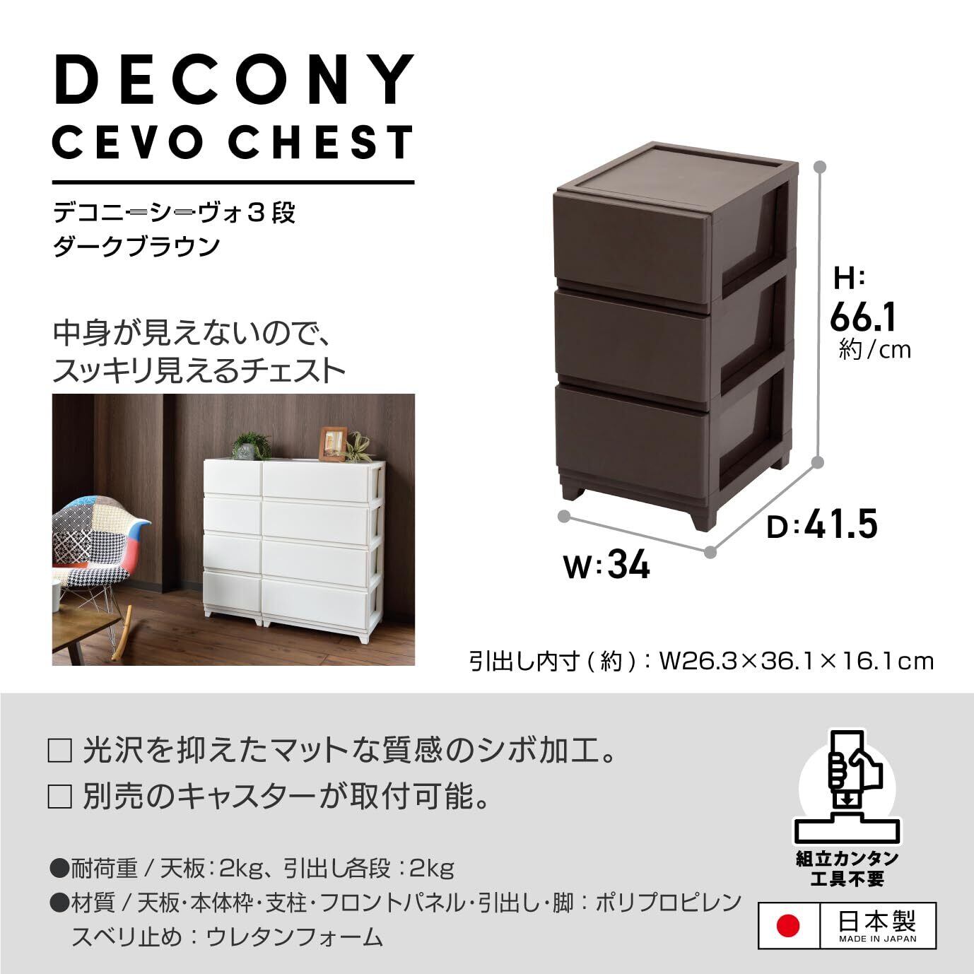 JEJアステージ(JEJ Astage) 収納ケース デコニー シーヴォ 3段 ブラウン 簡単組立 日本製 幅34×奥行41.5×高さ66.1cm