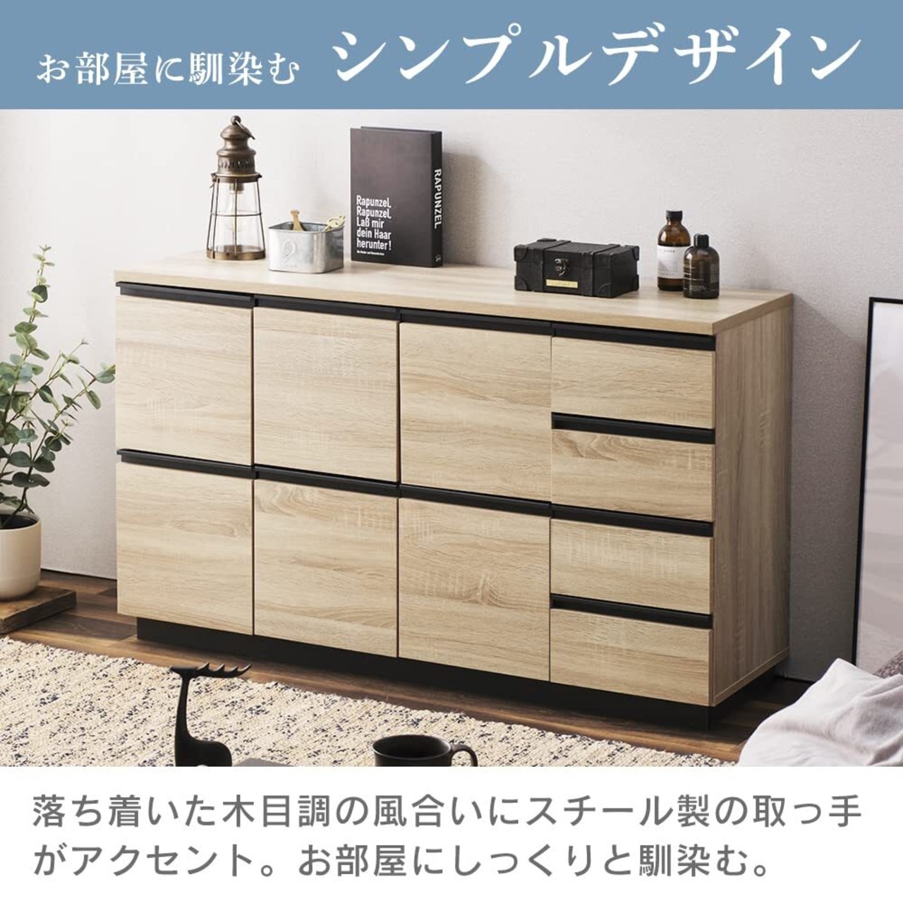主要材質:背板、引き出し底板…プリント紙化粧繊維板/その他板…プリント紙化粧パーティクルボード/取手部分…スチール(エポキシ塗装)
