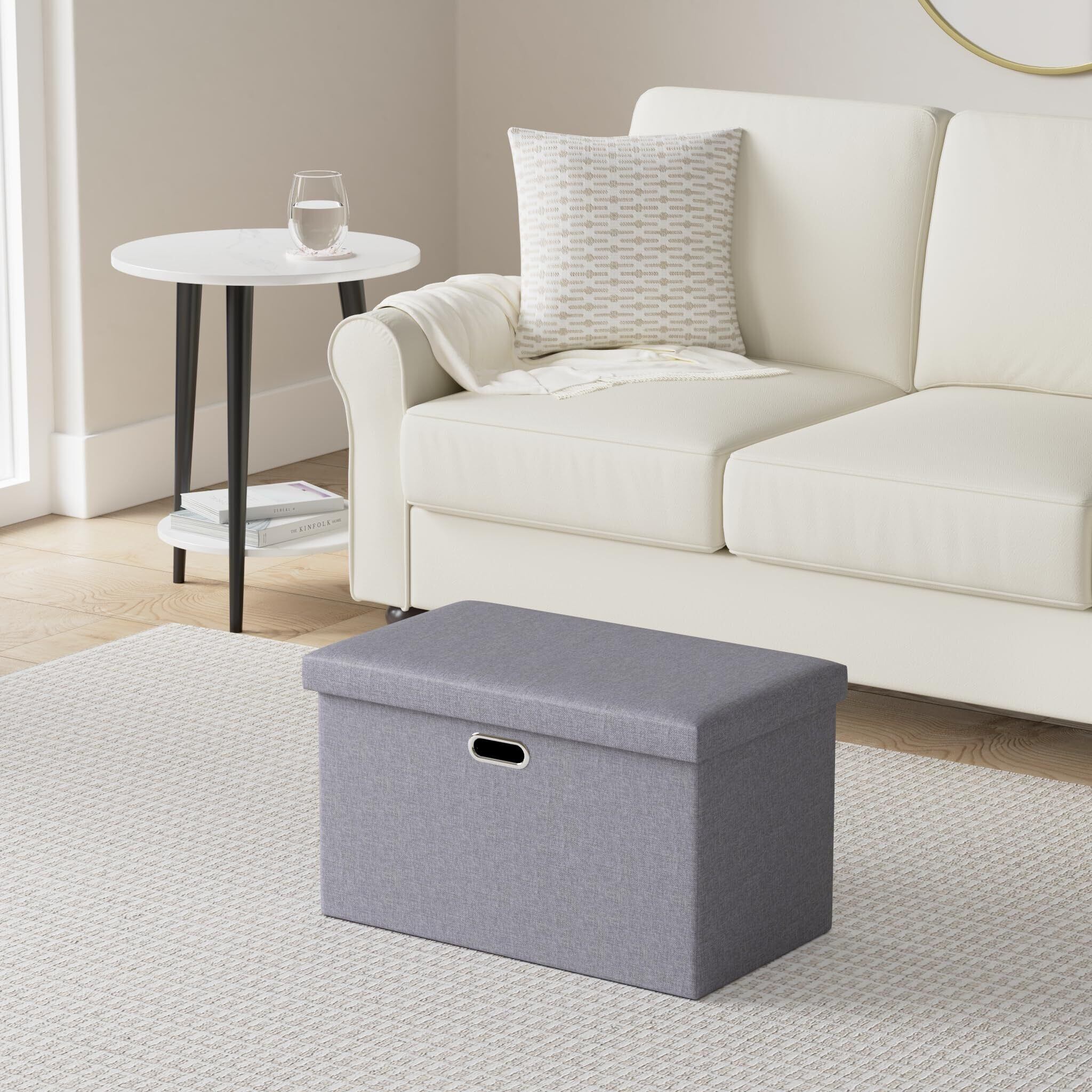 オットマン スツール 【monoマガジン掲載! 整理収納アドバイザー監修!】折りたたみ式 耐荷重120kg 収納 足置き 椅子 ボックス 持ち運びに便利 フットレスト ふた付き 取っ手付き mugenbo 日本ブランド (グレー, 60×36×36)