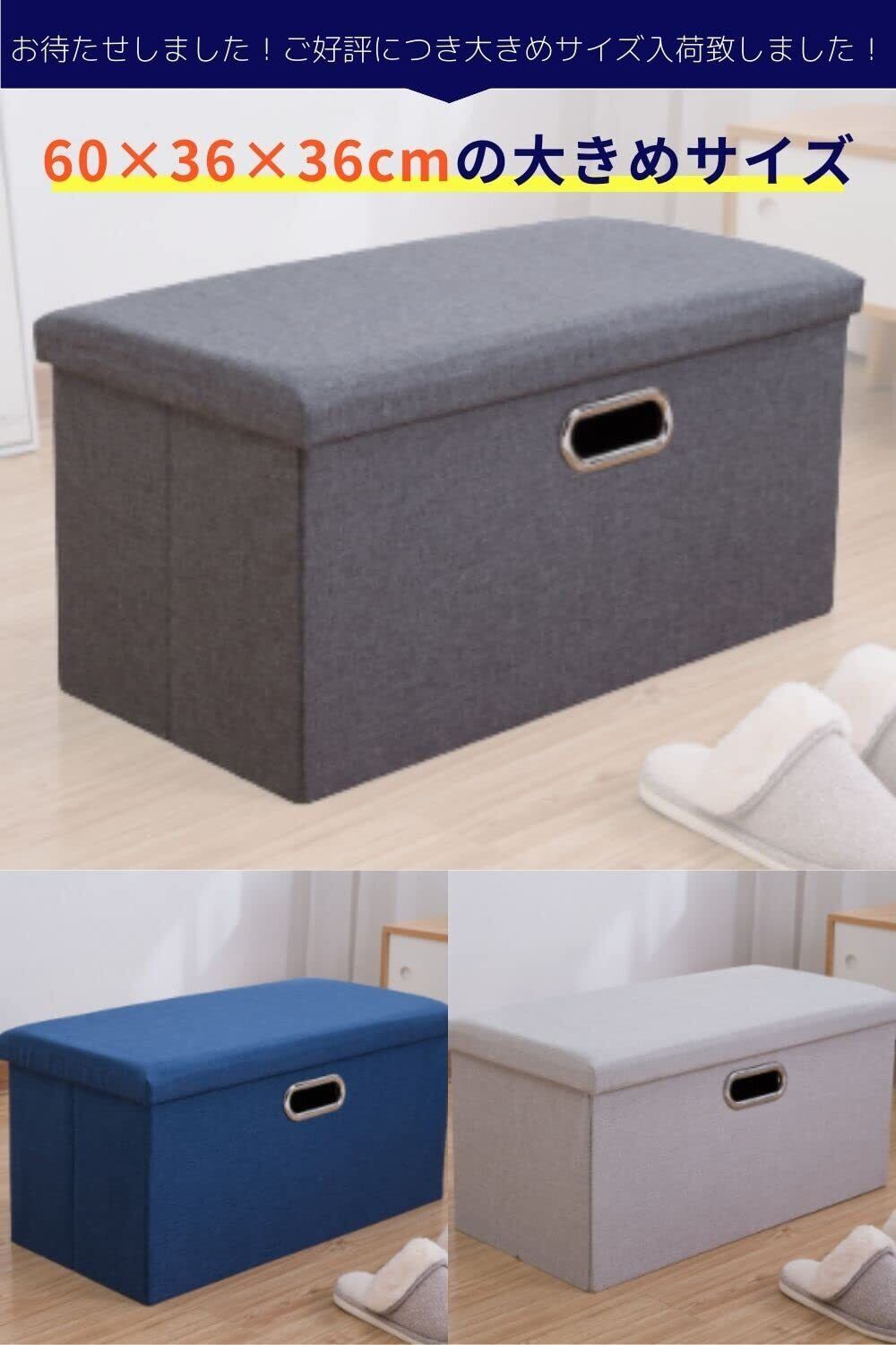 【コンパクトで組み立て簡単】収納スツールは説明書いらずで、安心簡単組立て。セットアップにかかる時間はわずか数秒で、急な来客時でもサっと出せて椅子にもなります。ストレージチェアを使わない時は折りたたみできるのがポイントです。コンパクトに収納できます。他のオットマンに比べ、取っ手付き付きなので丈夫で持ち運びに便利。収納スツールは収納力抜群。玩具、本や雑誌、リモコン、雑貨、毛布など収納可能。ごちゃごちゃした物を収納スペースにお片付け。多用途な収納ボックスで足置き、おもちゃ箱、雑貨収納ボックスとして活躍。玄関のちょっとしたイスにもなります。