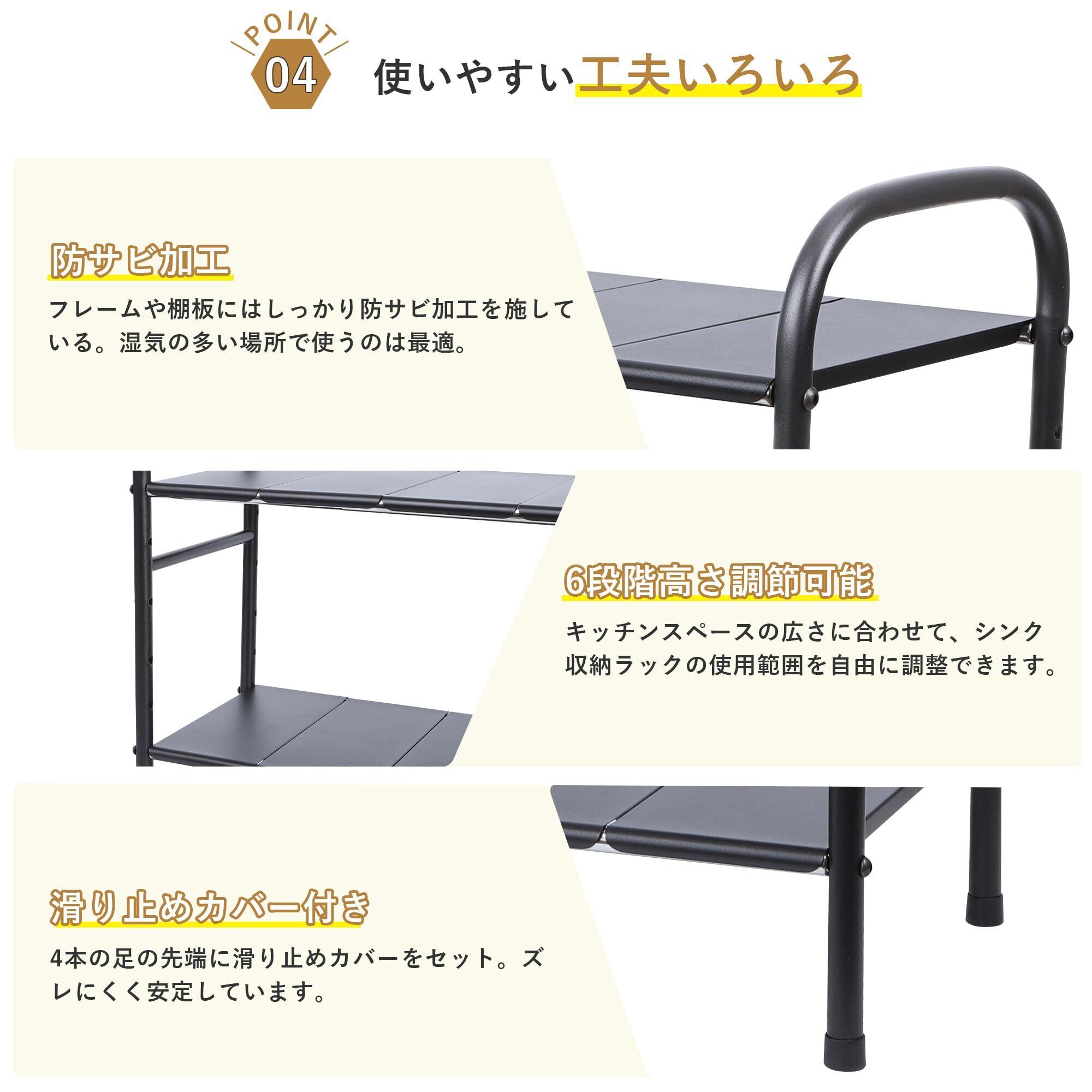 【 限定】 チチロバ(Titiroba) (TITIROBA) シンク下 収納 ラック シンク下収納 伸縮 2段 キッチン 簡単組立 シンク下伸縮棚 洗面台下 棚 収納ラック キッチンラック 高炭素鋼 ブラック 幅49~88×奥行24.5×高さ41.5cm