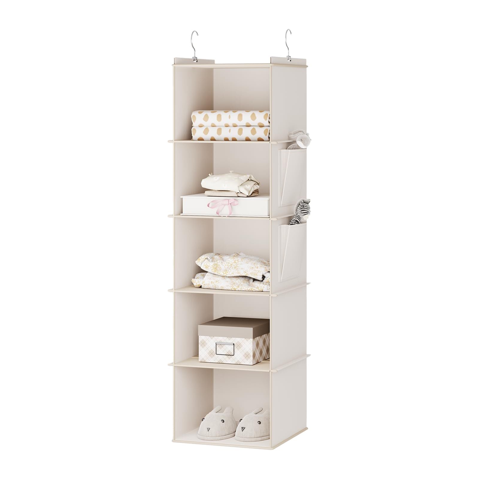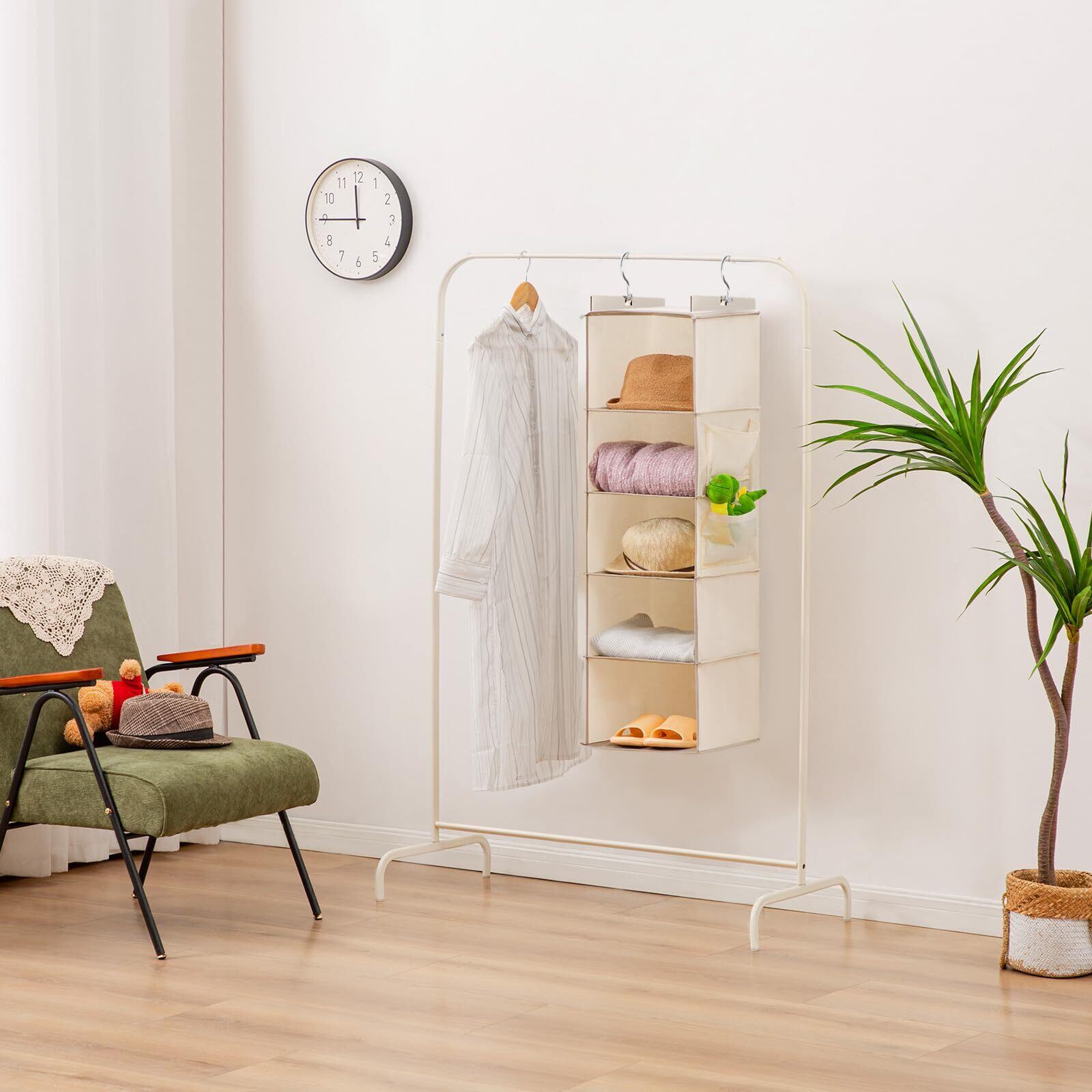 YOUDENOVA 吊り下げ収納 クローゼット 5段 通気繊維素材 帽子 衣類収納 不織布 衣類ラック 使いやすい 防湿防カビ 折りたたみ ポケット 省スペース ベージュ 30x30x100cm