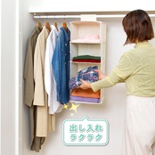 ●クローゼットのパイプに面ファスナーで簡単に吊り下げて使える収納ラック。