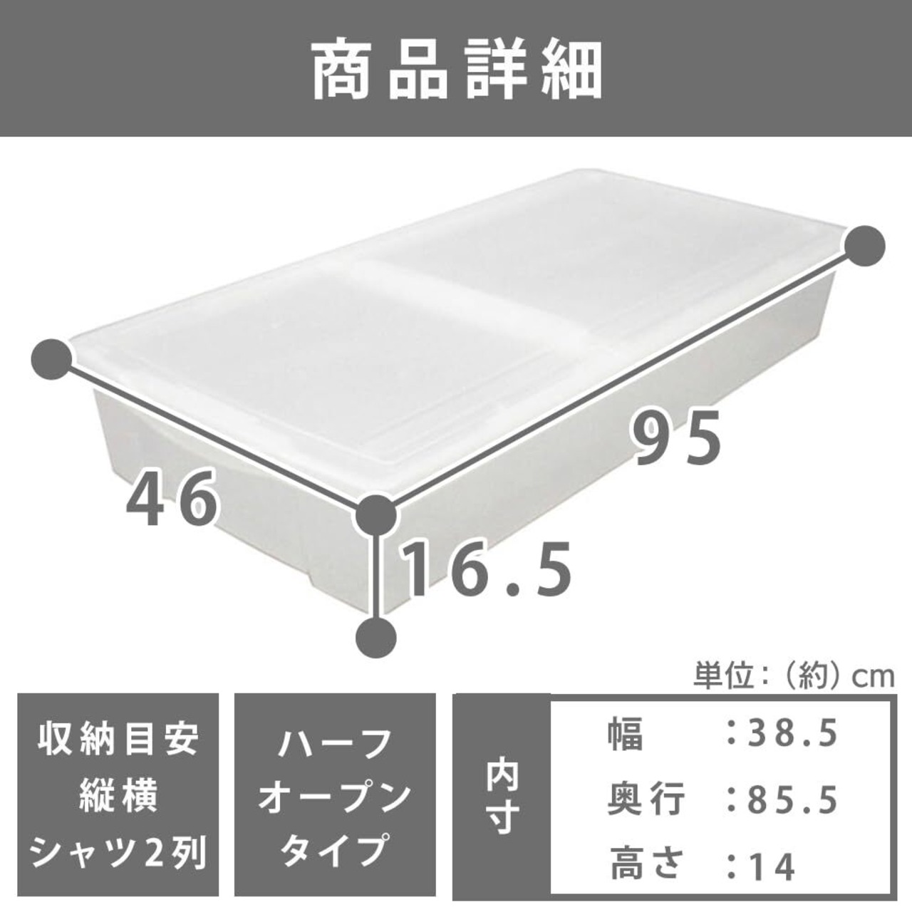 内寸(cm):幅約38.5×奥行約85.5×高さ約14