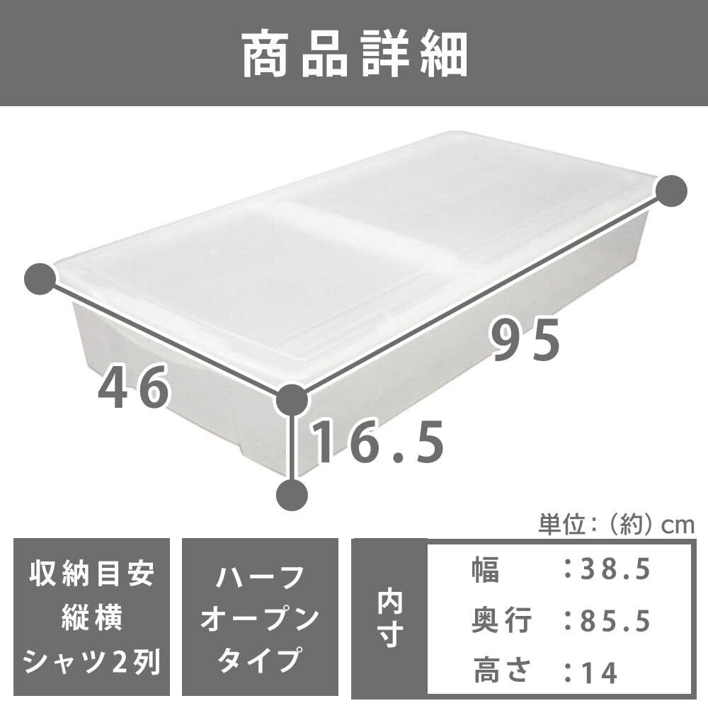 【ベッド下のスペースを活かす便利な収納アイテム!】この『アイリスオーヤマ ボックス』は、ベッド下のデッドスペースを有効活用するための理想的な収納ソリューションです。幅46cm、奥行95cm、高さ16.5cmの設計で、衣類や雑貨をスッキリと整理でき、快適な生活空間を提供します。