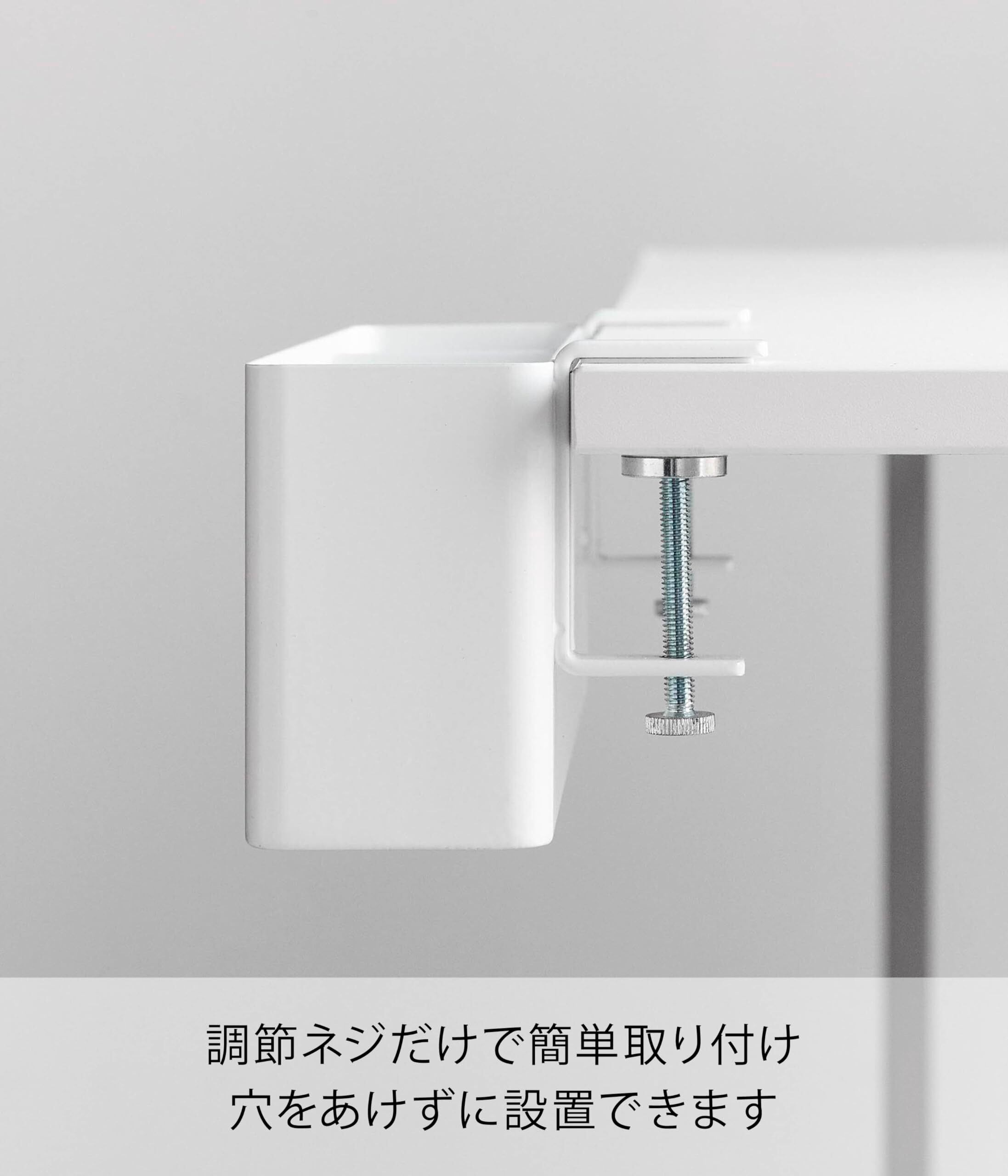 本体サイズはW30×D10×H9.5~11cmで、テーブルやデスクの横にぴったりフィット。調節ネジにより高さを調整できるため、様々な家具に対応し、使いやすい位置に設置できます。