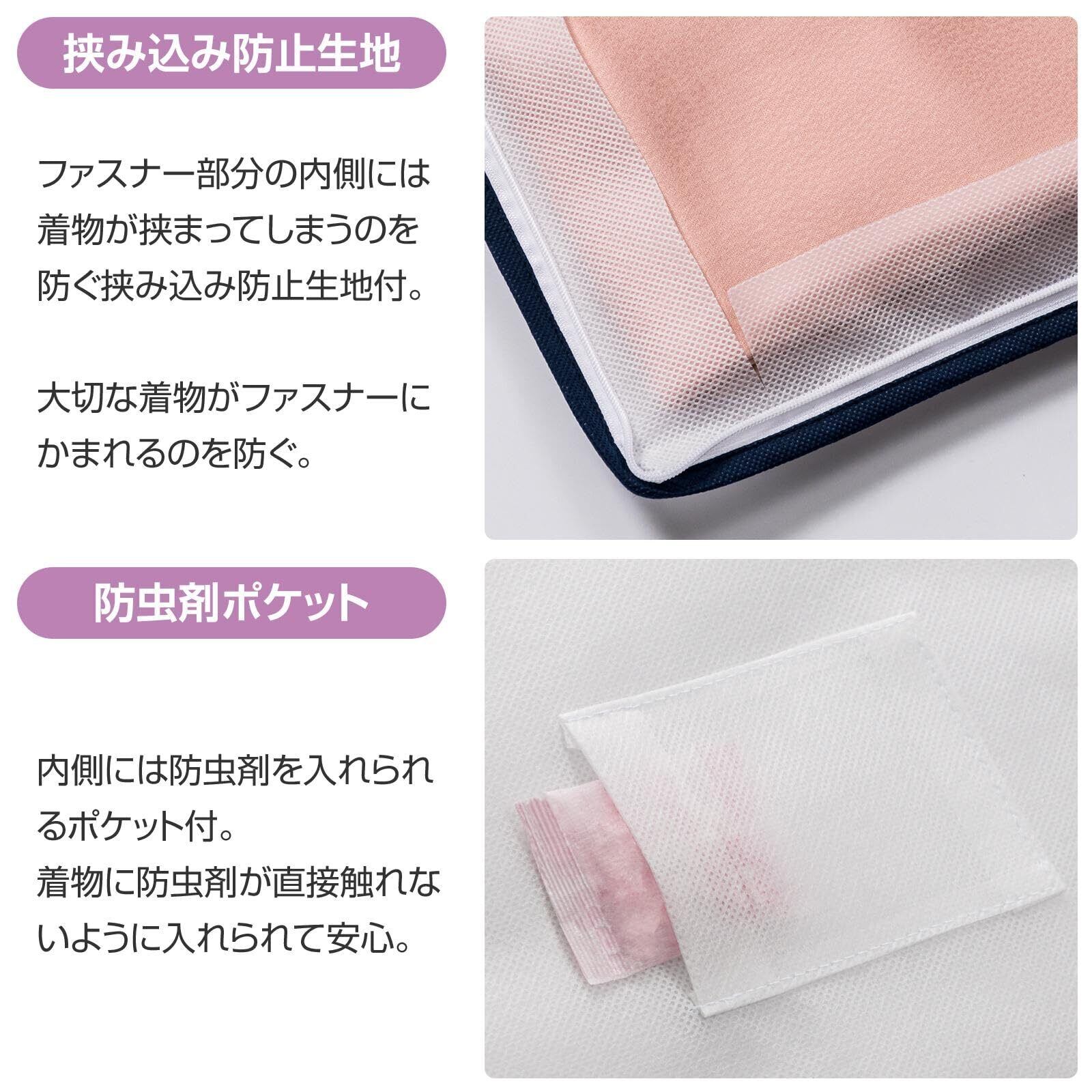 着物の挟み込みを防止する生地付で内側には防虫剤が入れられるポケット付。