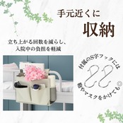 付属のS字フックを使用することで、手軽にベッドサイドに設置できます。取り外しも簡単なので、必要に応じて移動が可能です。入院だけでなく、退院後も自宅で便利に使えます。