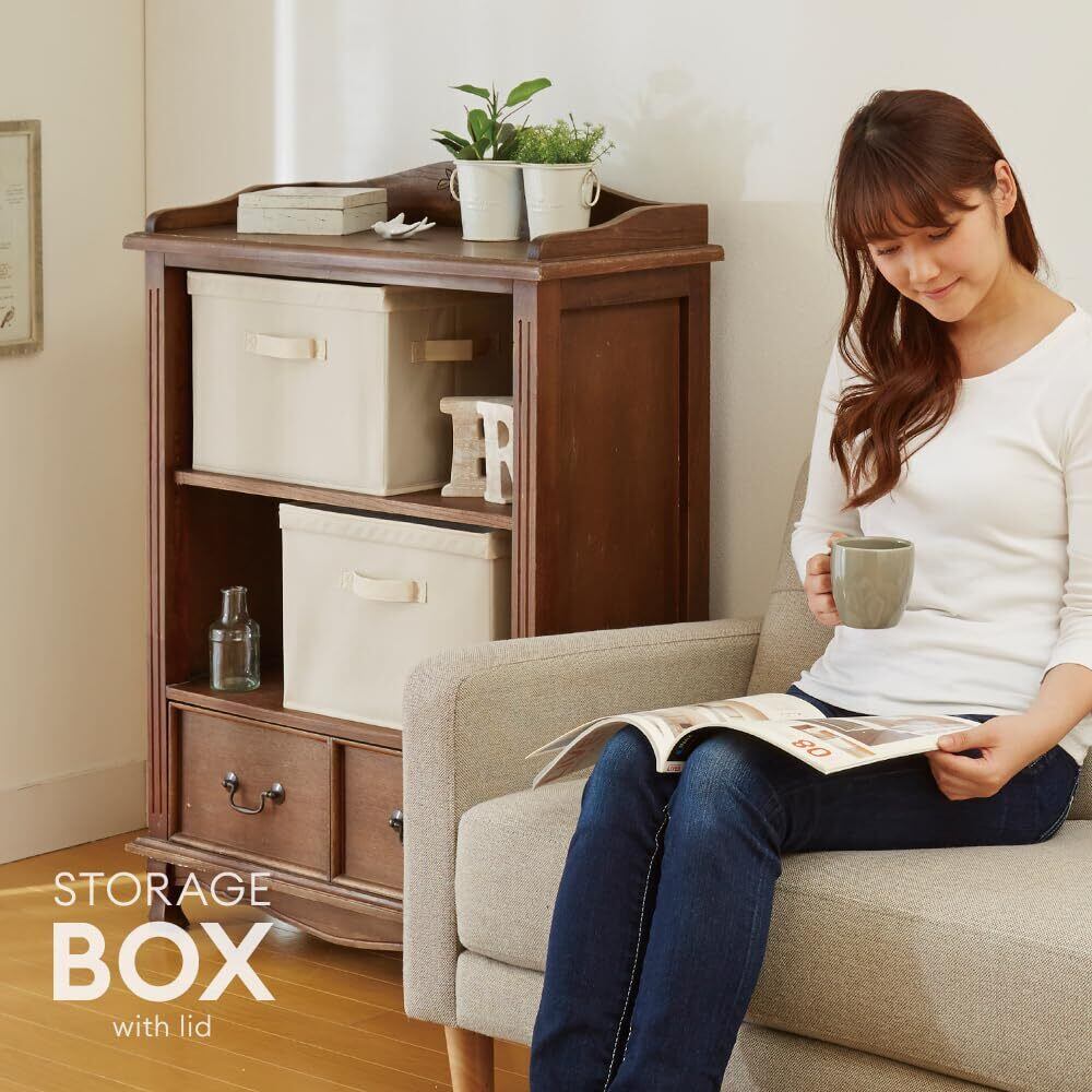 【ホコリからガードできるふた付き】フタ付きなので、ホコリや汚れを防いでくれます。中身を見せたくない物や、衣類の整理や食品ストックおもちゃの片付けなどに!