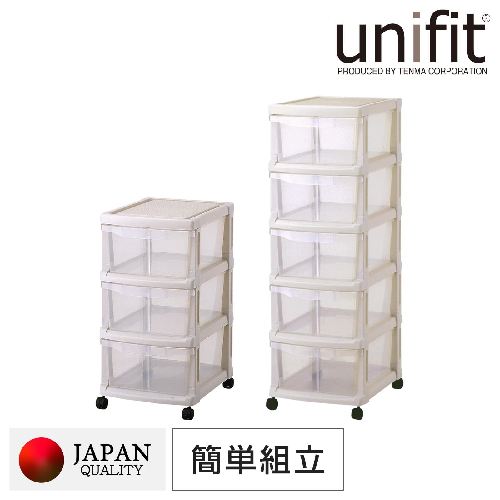 天馬 キャスター付きのシンプルな収納ケース 日本製 簡単組立 ユニフィット 組立式3段 クローゼットで使える衣装ケース 収納ボックス【幅32×奥行41×高さ60.5cm】