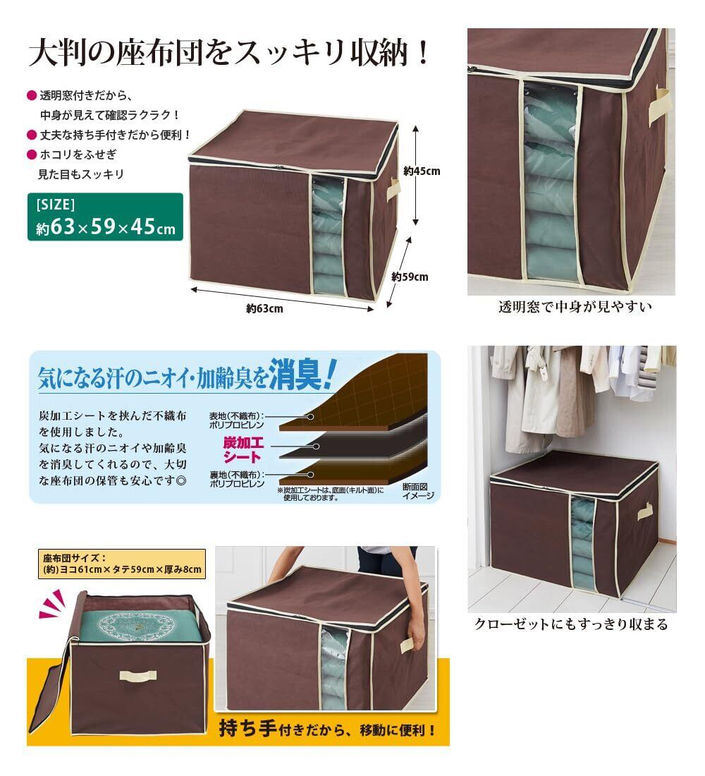 関連キーワード:[座布団収納, 炭入り消臭, クローゼット収納, 不織布, 通気性, コンパクト]