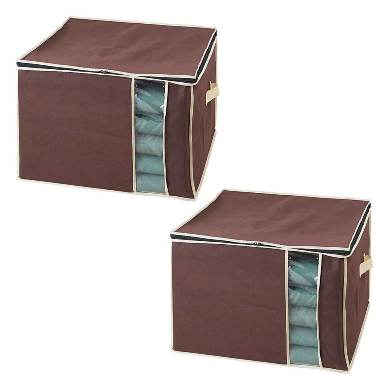 アイメディア(Aimedia) 座布団収納ケース 2個組 座布団収納袋 収納袋 座布団 炭入り消臭 押入れ収納 クローゼット収納 不織布 炭加工シート 通気性 ホコリよけ 3層構造 持ち手付 透明窓付 コンパクト 来客用
