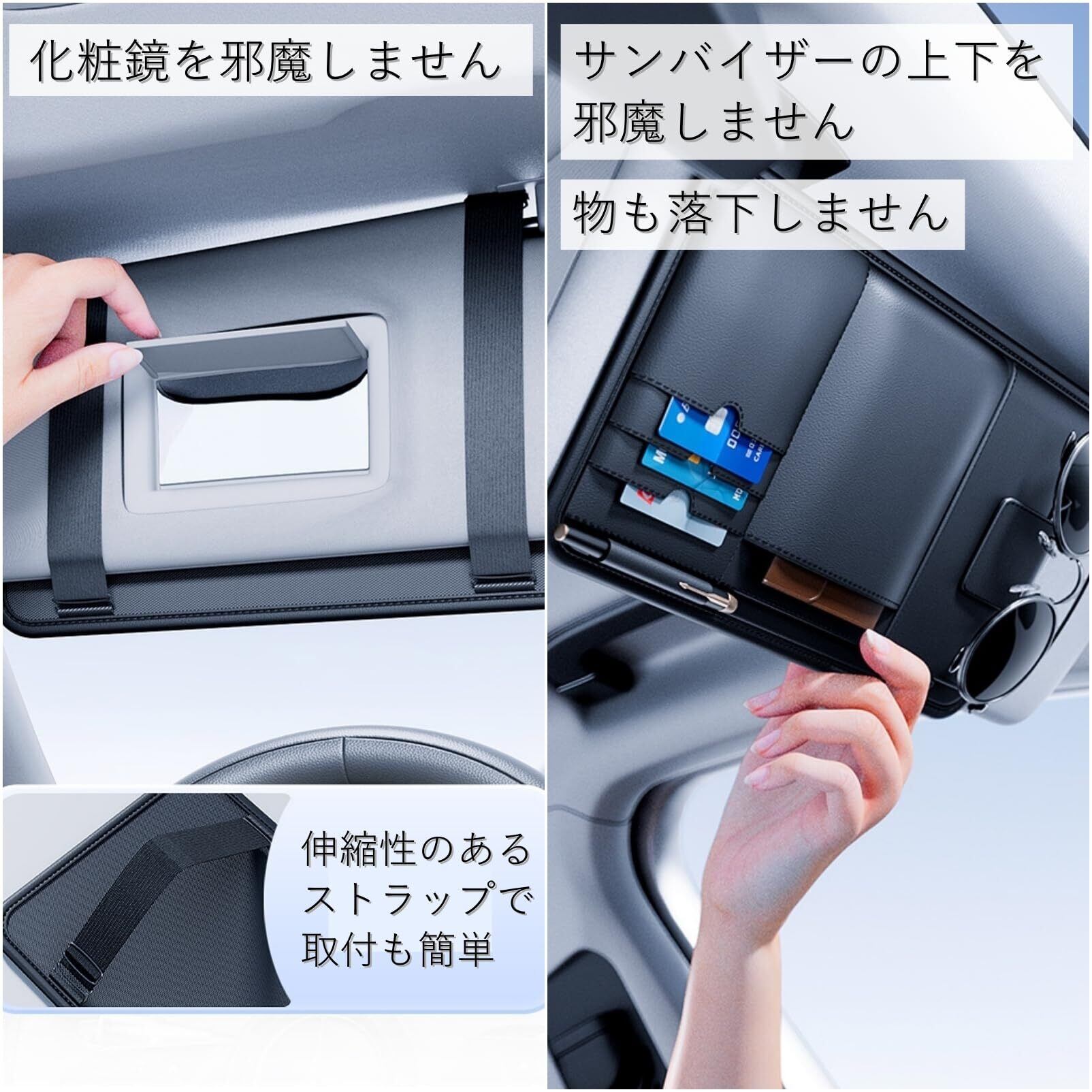 COZENTA 車 収納 サンバイザーポケット 眼鏡ホルダー カード 小物入れ 幅広 レザー調