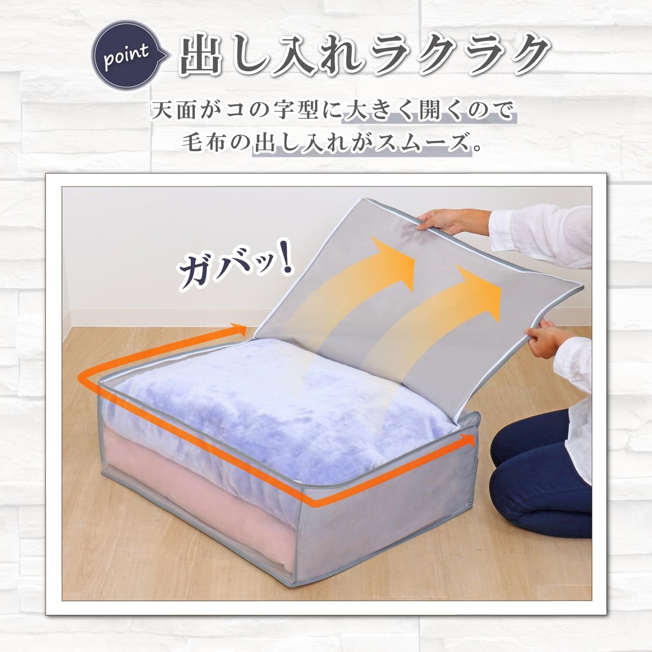 ●通気性の良い不織布で毛布を湿気やホコリから守り大切に保管。