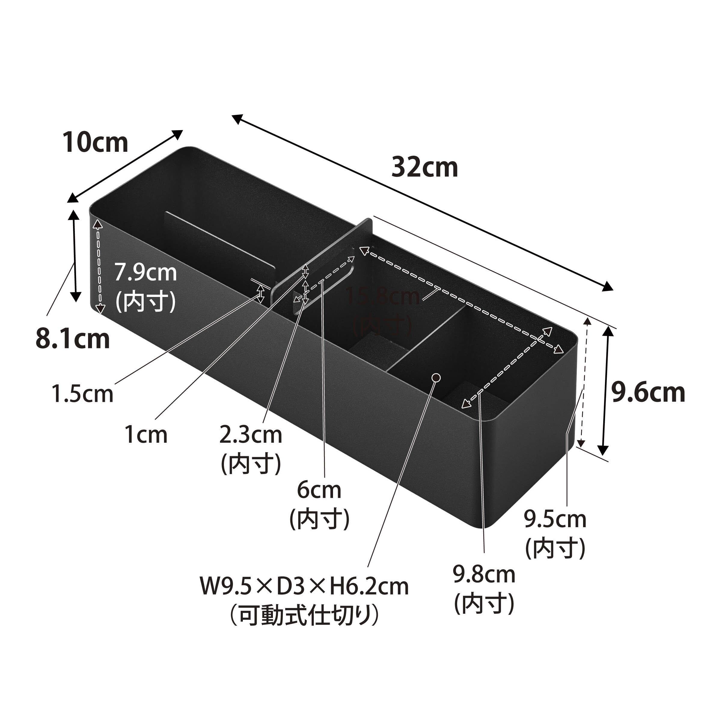 商品サイズ:本体:W32×D10×H9.6cm、可動式仕切り:W9.5×D3×H6.2cm