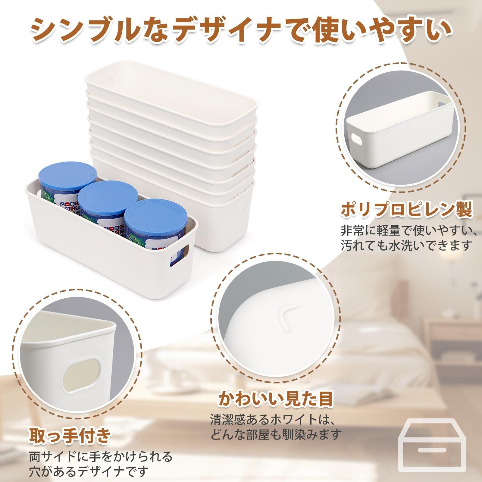 RAIN QUEEN 収納ボックス 小物入れケース 収納カゴ ポリプロピレンケース 8個セット 白 収納バスケット 卓上収納ケース 取っ手付き 小物 整理整頓 キッチン収納 押入れ収納