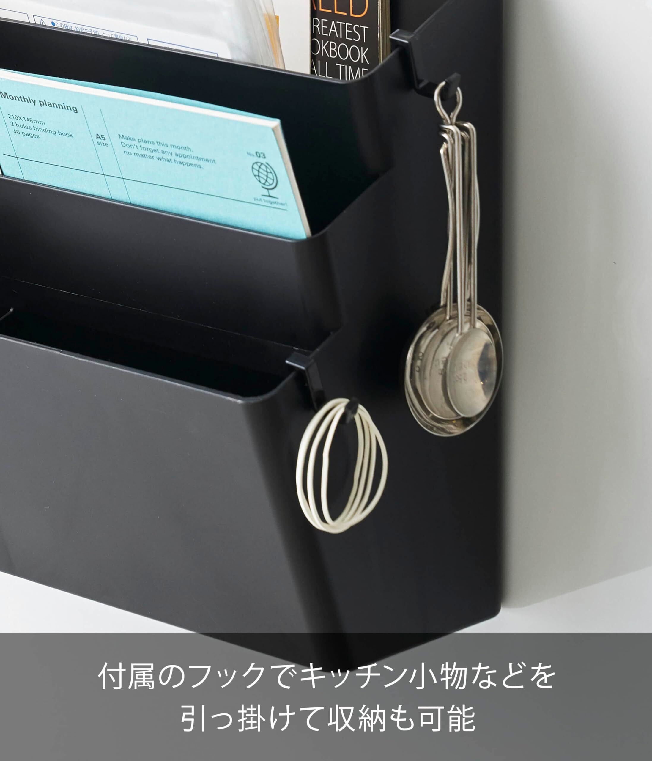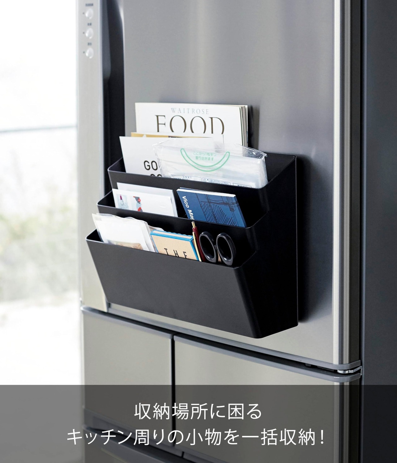 ◆[山崎実業(Yamazaki) 冷蔵庫横マグネット収納ポケット 3段 ブラック 約32X13X24.5cm タワー 4497] スペースを有効活用する収納の決定版!◆