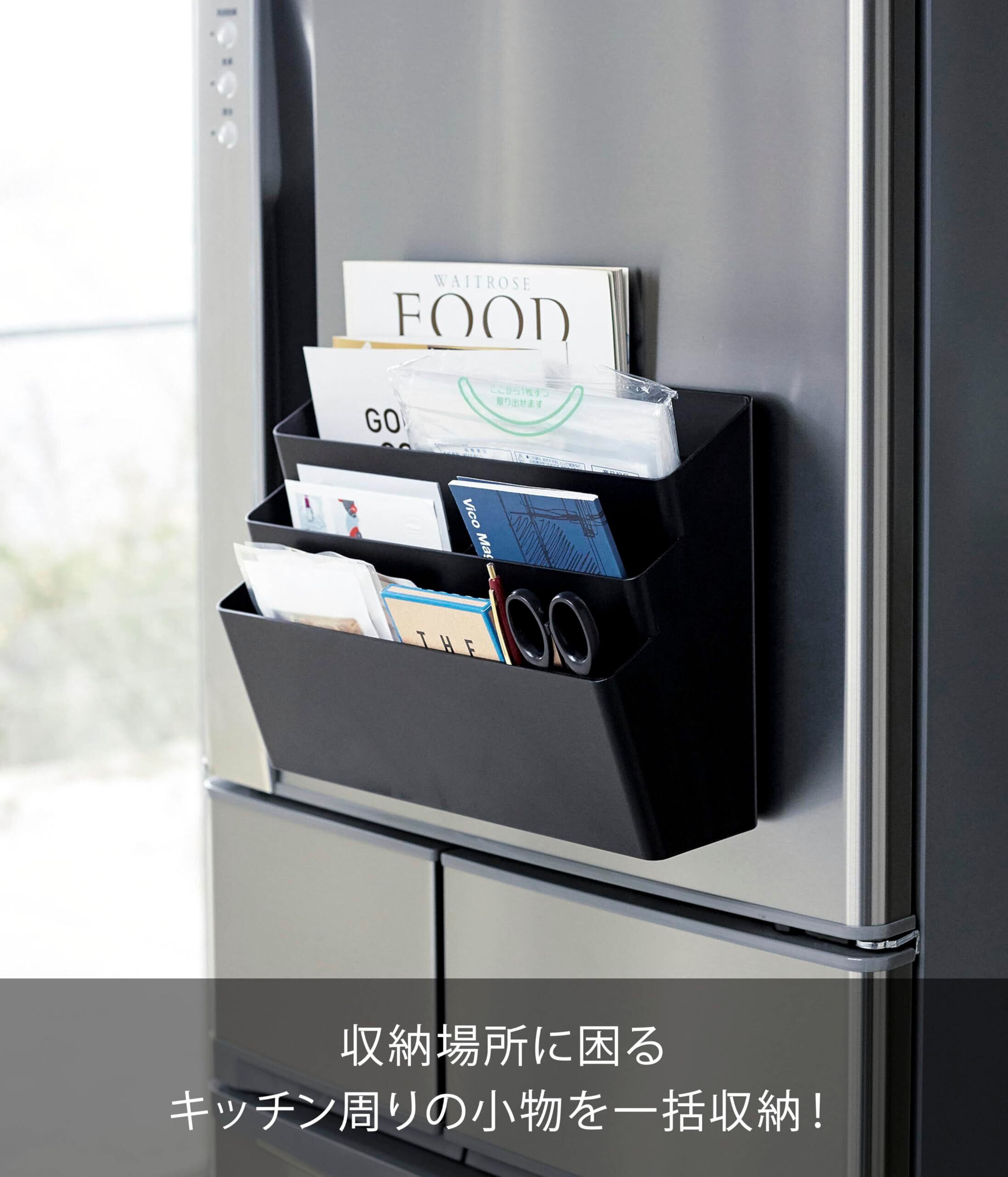 【冷蔵庫横で使えるマグネット式収納ポケット!】『山崎実業 冷蔵庫横マグネット収納ポケット』は、冷蔵庫の横に簡単に取り付けられるマグネットタイプの収納ポケットです。限られたスペースを有効活用でき、日常の小物をすっきり整理可能です。