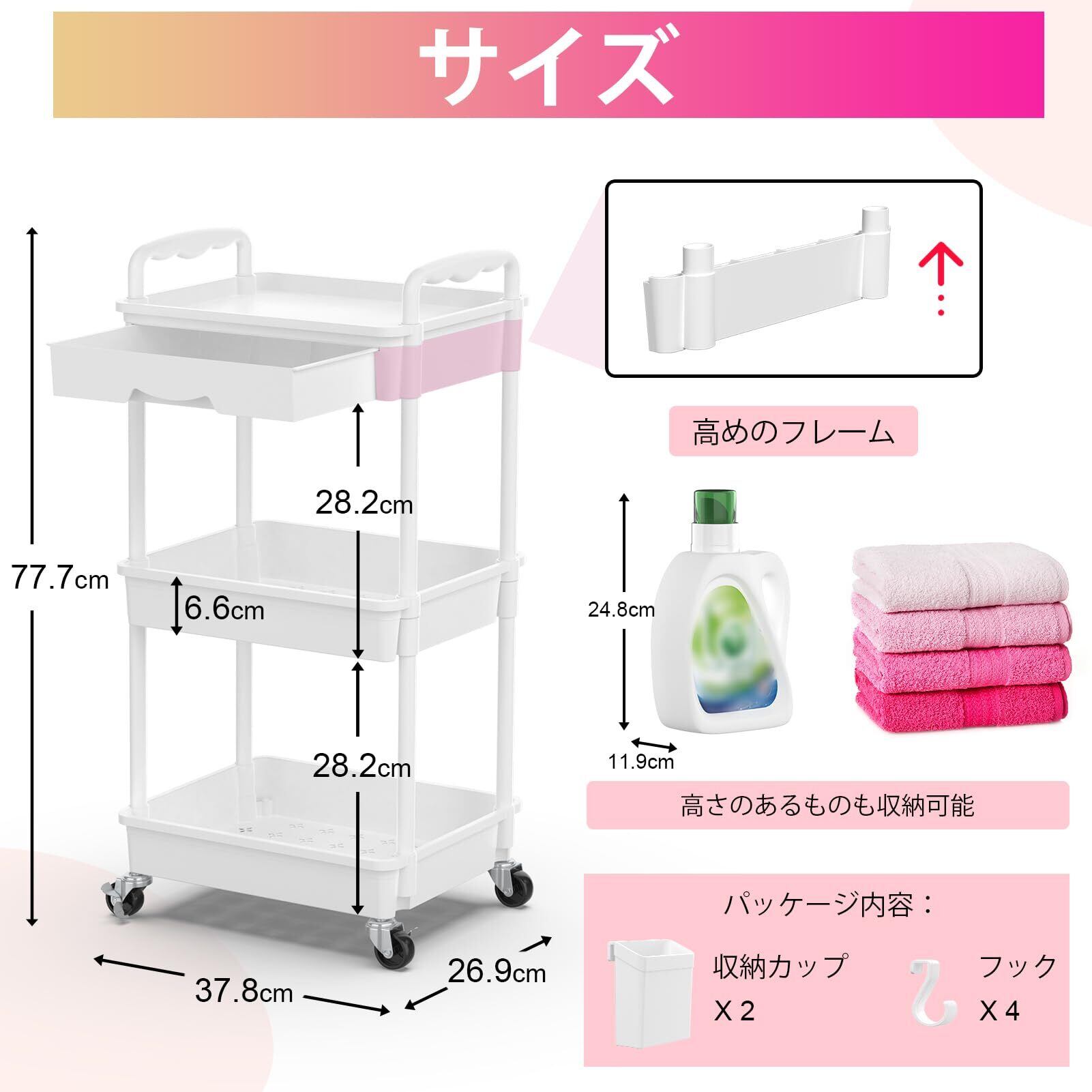 関連キーワード:[キッチンワゴン, 隙間収納, バスケットラック, 多機能, 引き出し付き]