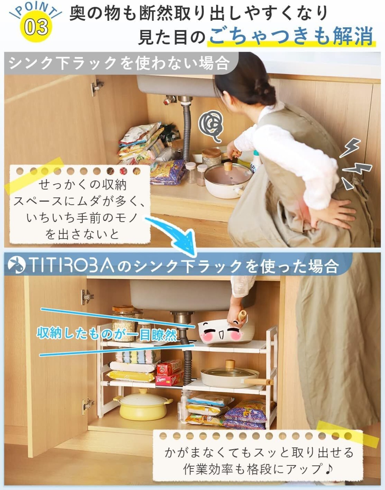 そんな方にぜひ使ってほしいTITIROBAシンク下収納ラック 伸縮式