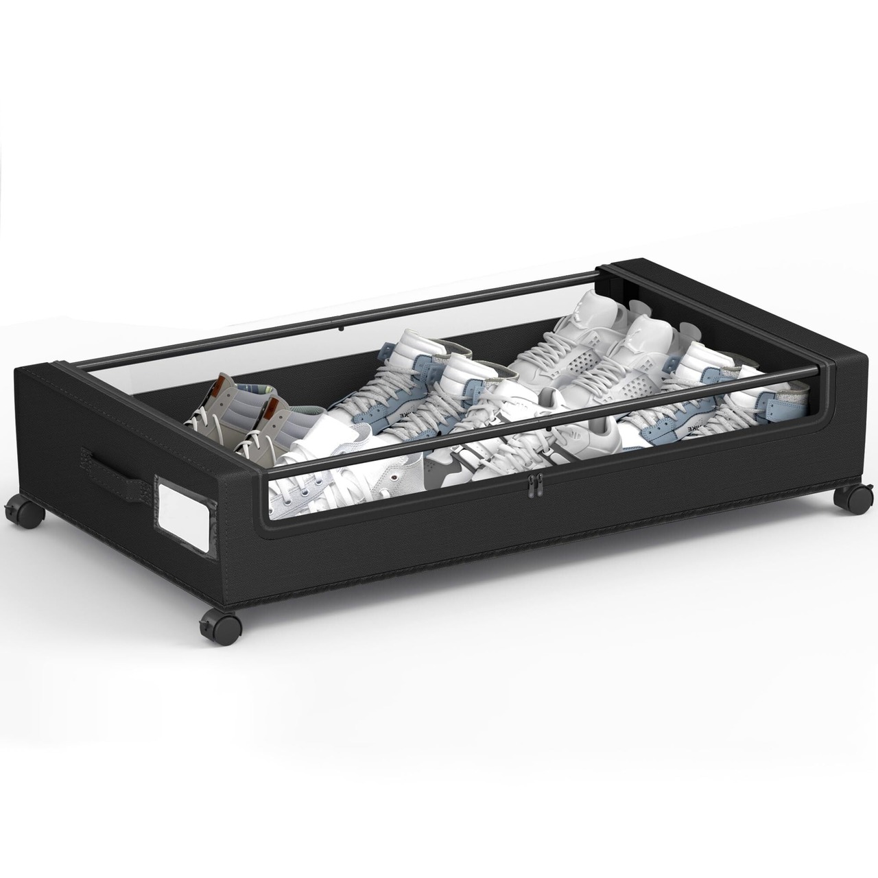 メミパーズ(Memypers)ベッド下収納 ベッド下収納 キャスター付き ベッド下 ソファ下 衣類 和服 漫画 靴 布団 毛布 収納ケース 防塵カバー付き(キャスター付き, ブラック) (ブラック, 1個セット)