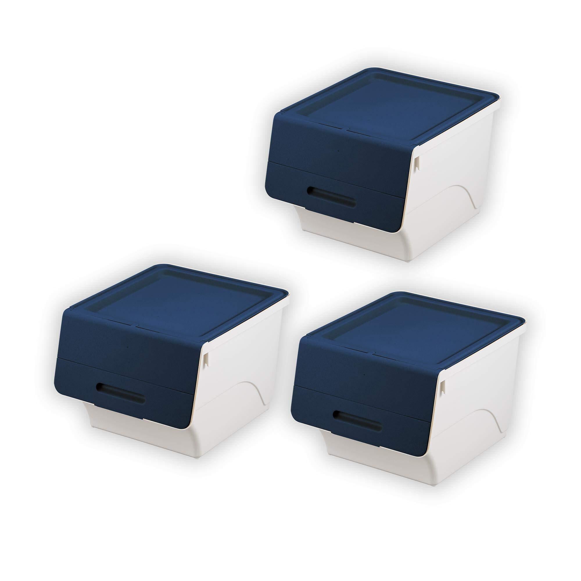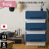 ◆[【web限定カラー】サンカ フロック 重ねて使える蓋付き衣装ケース ネイビー 【3個組】 おしゃれな大容量収納 引き出さずに使える前面開閉式 カパっとひらく固定できるフタ キャスター取り付け可能 日本製 衣類 収納ボックス (幅38.5×奥行46×高さ31cm) froq Afr-30NV-3] 使いやすさとスタイルを兼ね備えた収納ケース!◆
