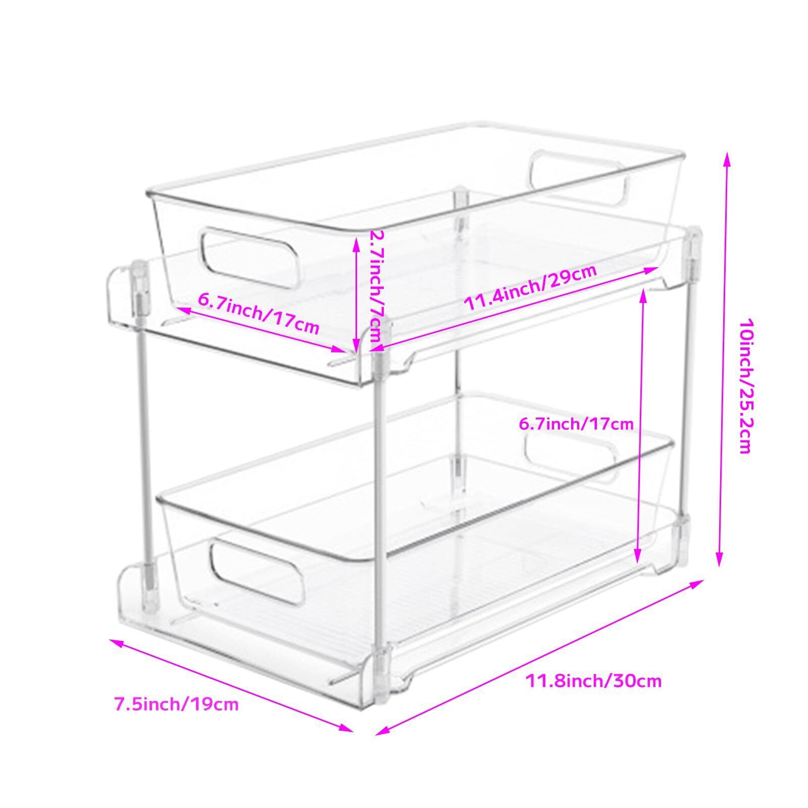 耐久性と視認性:この洗面所収納ボックスは耐久性のあるPET素材で作られ、4本のステンレス鋼支柱で接続されているため、シンク下に置いても錆びません。二層に重ねられ、上層の引き出しは15ポンドまでの重さに耐えられます。透明なデザインにより、必要なアイテムを簡単に見つけることができ、時間を節約し、キッチン収納や洗面所収納をすっきりと整理整頓できます。