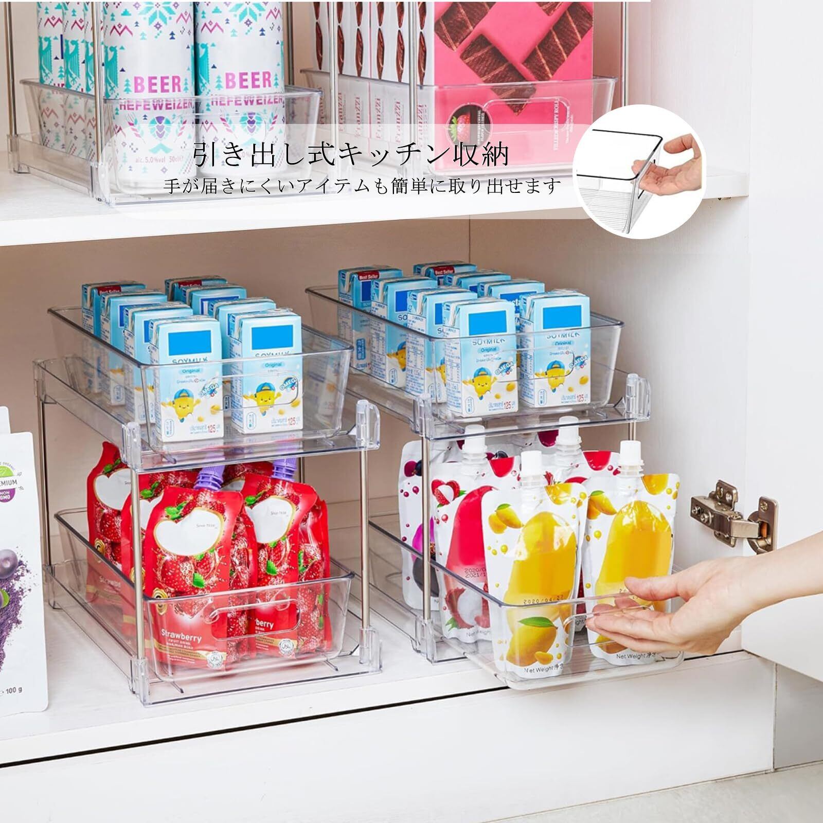 ◆[キッチン 収納 2個セット 押し入れ収納 洗面所 シンク下 ラック 調味料入れ 小物整理 隙間収納 組立簡単 省スペース 透明 幅20cm] 機能的な収納で整理整頓を叶える!◆