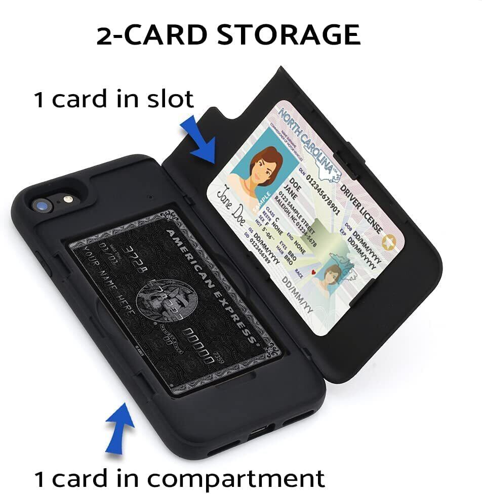 TORU CX PRO iPhone SE3 2022 ケース 収納背面 2枚 IC Suicaカード入れ カバ― ミラー付き (SE2 2020 / 8 / 7用) - ブラック