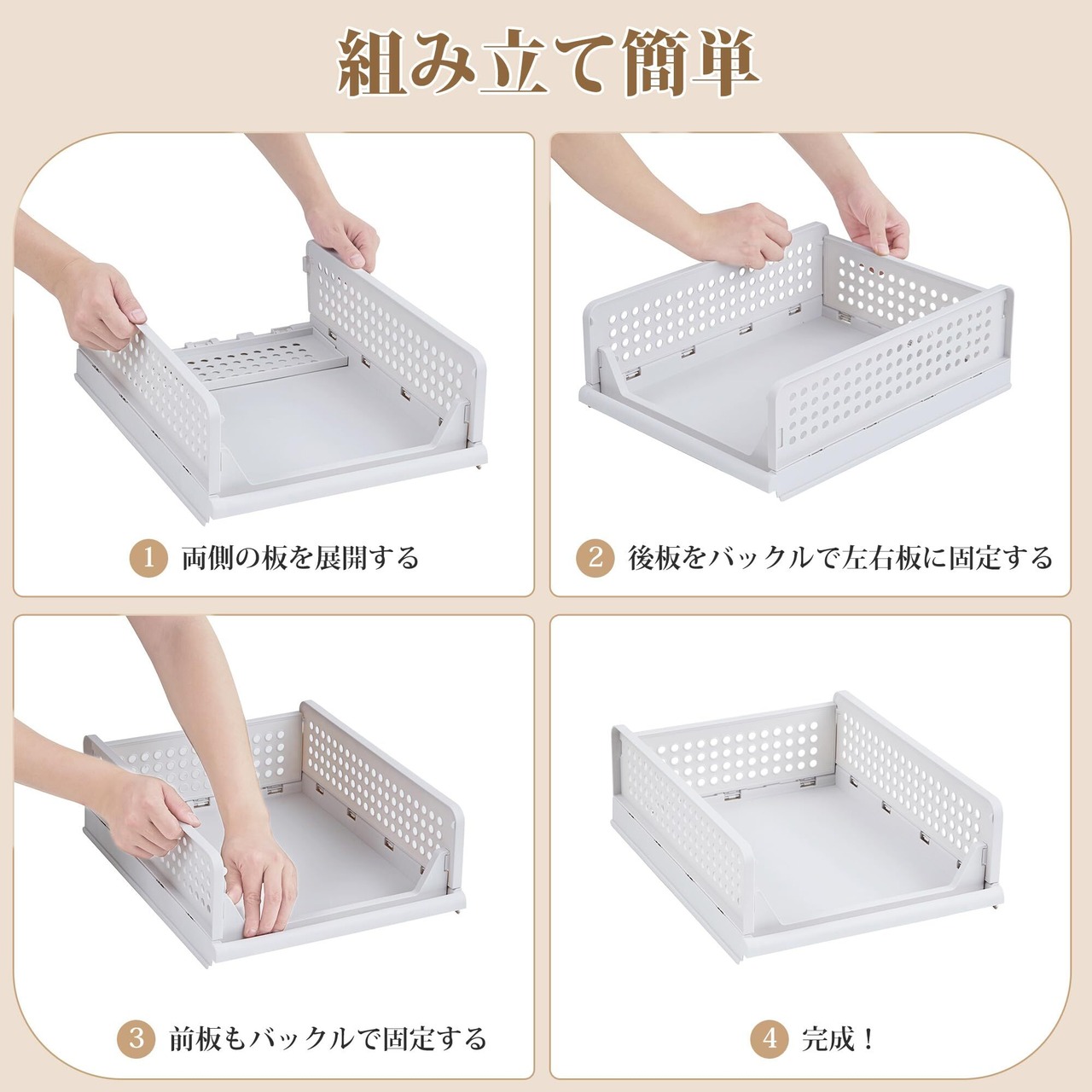 複数のケースを積み重ねて使用できるため、収納スペースを有効に活用できます。また、取っ手が付いていて、出し入れが簡単。生活空間を美しく保ちながら、機能的な収納を実現します。