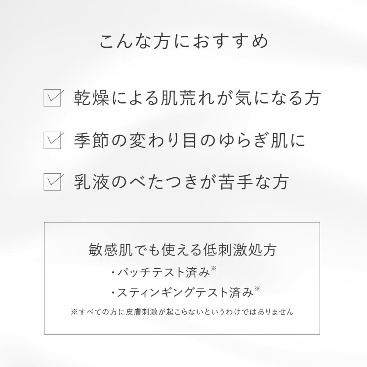 【こんな方におすすめ】肌がゆらぎやすい方、乾燥による肌荒れやキメの乱れが気になる方、保湿はしたいけどべたつきが苦手な方、さっぱりした感触がお好みの方
