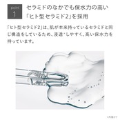 【セラミドへのこだわり】セラミドは肌の水分量を維持し、刺激物質の侵入を防ぐ、肌バリアの主成分です。様々な種類があるセラミドの中でも、「ヒト型セラミド2」を採用。肌が本来持つセラミドと同じ構造で、浸透力の高さが特徴です。