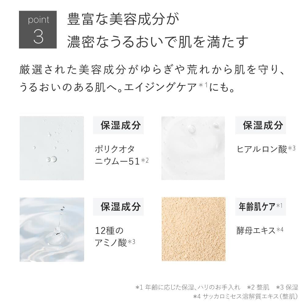 さらっとしたテクスチャーで、べたつきを感じさせず、使用後は肌がふんわりと軽やかに。日常生活の中で安心して使える、ストレスのないスキンケアを提供します。メイク前の下地としても最適です。