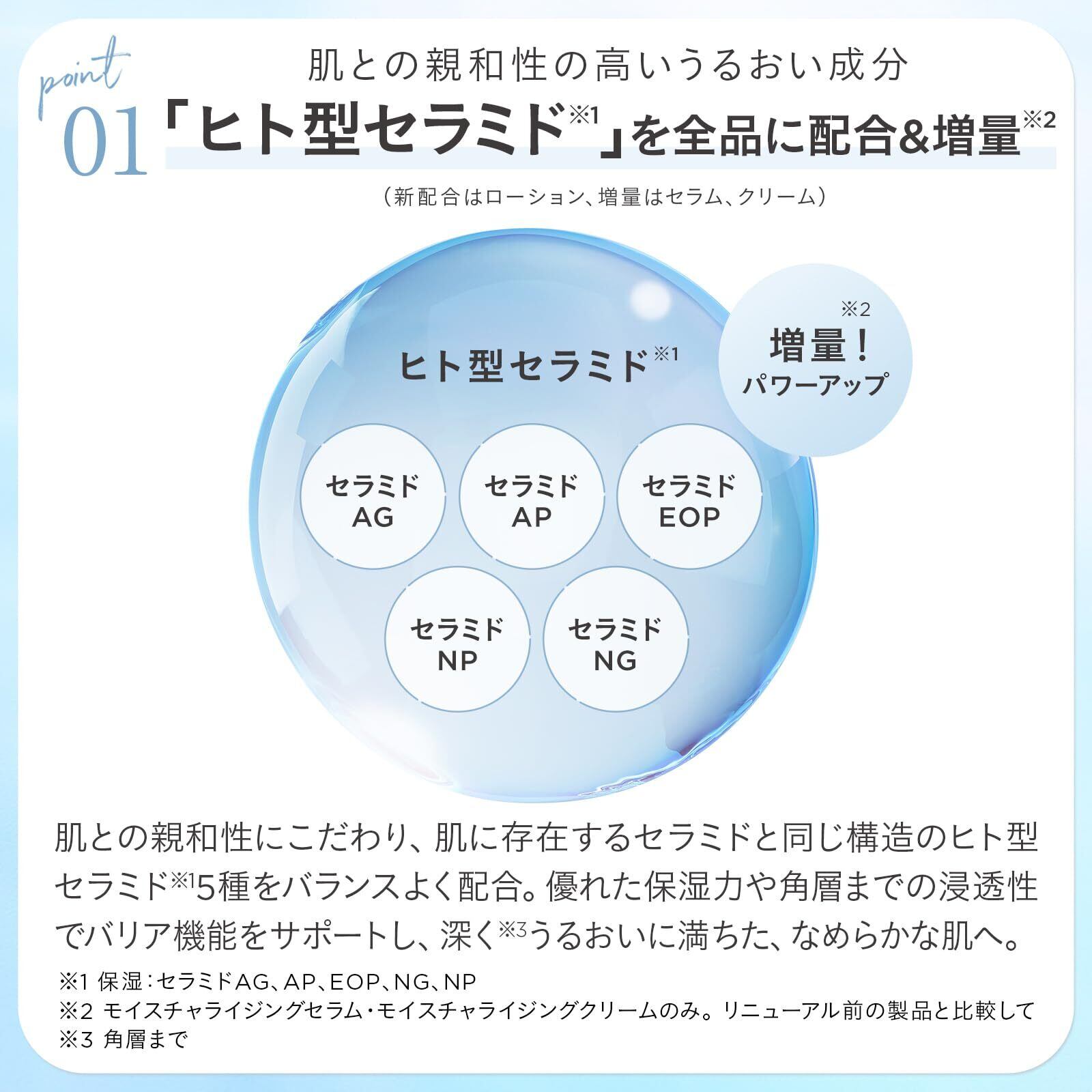 Point1 :「ヒト型セラミド※1」配合で、深く※2すみずみまでうるおう ※1 保湿成分:セラミドAG、AP、EOP、NG、NP ※2 角層まで