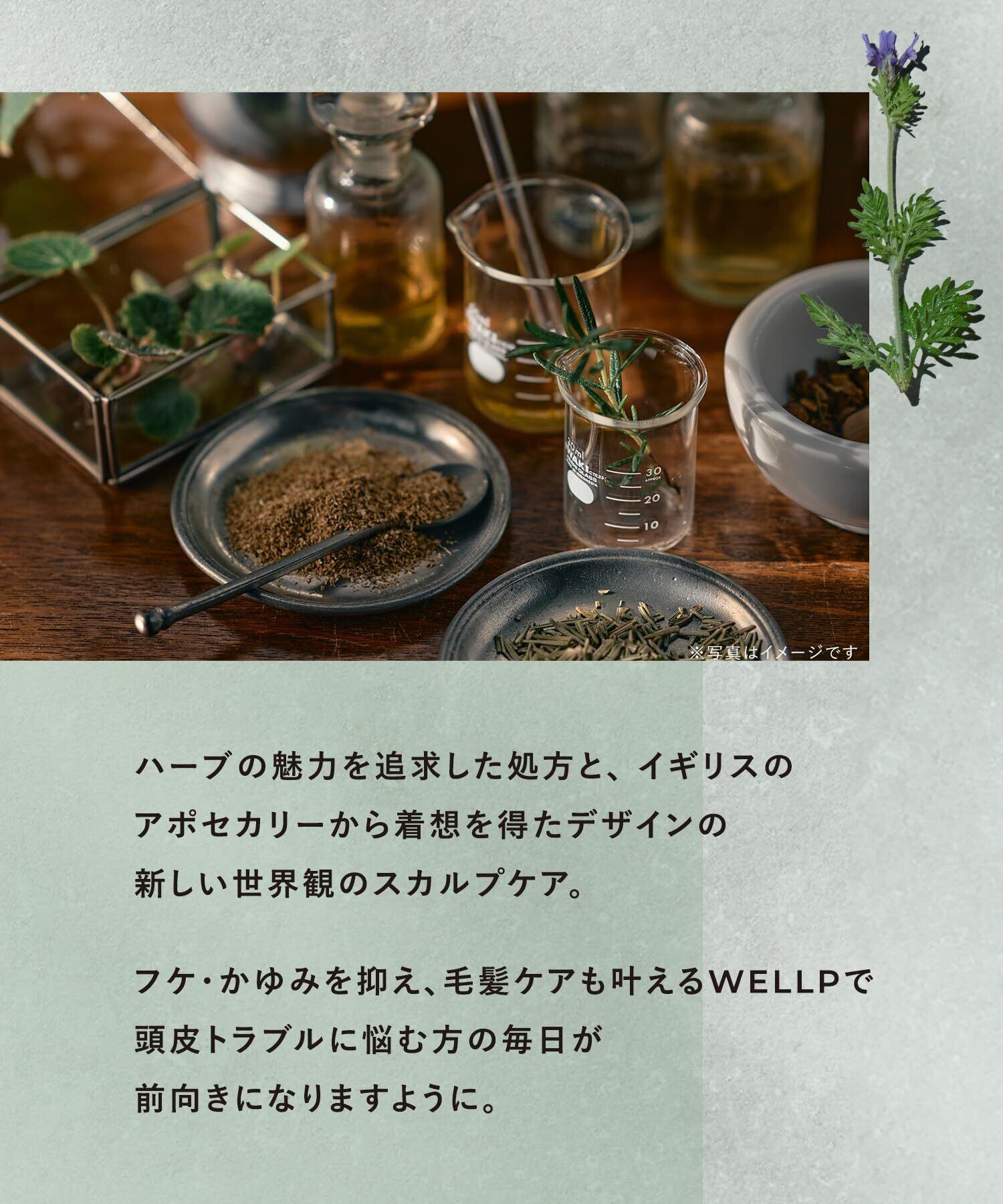 『WELLP スカルプケアローション』は、ラベンダーとゼラニウムの香りが心地よい、頭皮専用の保湿ローションです。乾燥やかゆみが気になる頭皮をしっかりと保湿し、健康的な状態を維持します。髪にも優しく、健やかな髪の成長をサポートします。