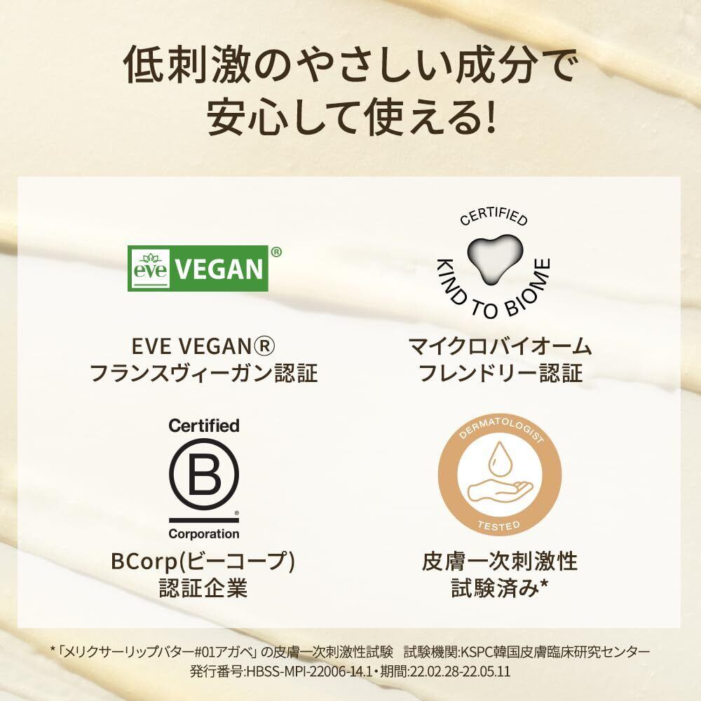 【アガベ&シアバター配合】ワセリンの代わりにアガベと高保湿のシアバターをブレンドし、5種の植物オイルとビタミンEを贅沢に配合したヴィーガンフォーミュラです。乾燥が気になる唇にも、やさしくうるおいを与えて健やかに整えます。