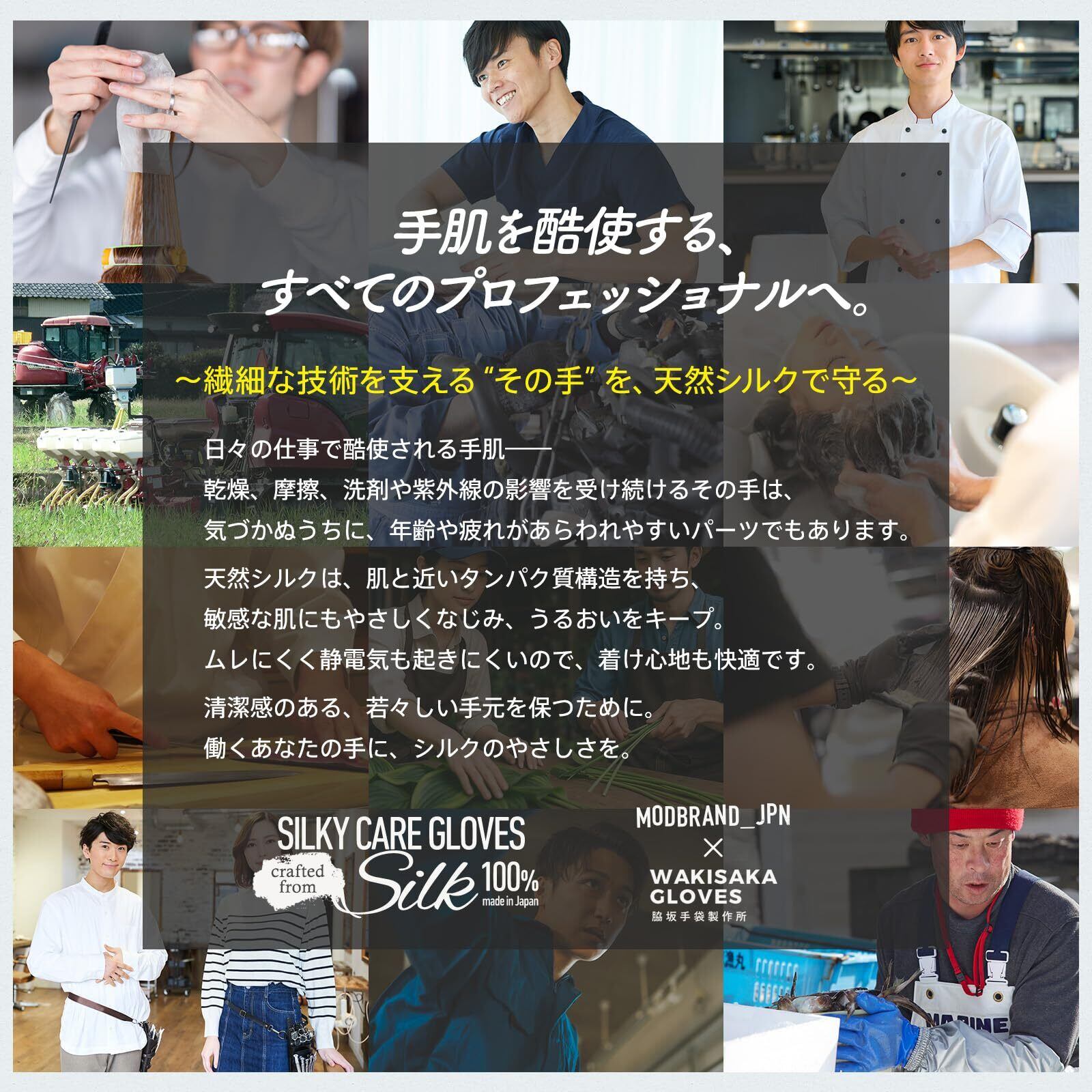 [MODBRAND_JPN] シルク100% 「Silky Care Gloves」 メンズ ハンドケア 手袋 | スマホ対応・乾燥対策・保湿ケア | 日本奈良県製 | 就寝用 ナイトケア 手荒れ対策 |「大人の手を飾るのは、シルクの艶。」差をつける綺麗な手 ハンドクリームの使用後に