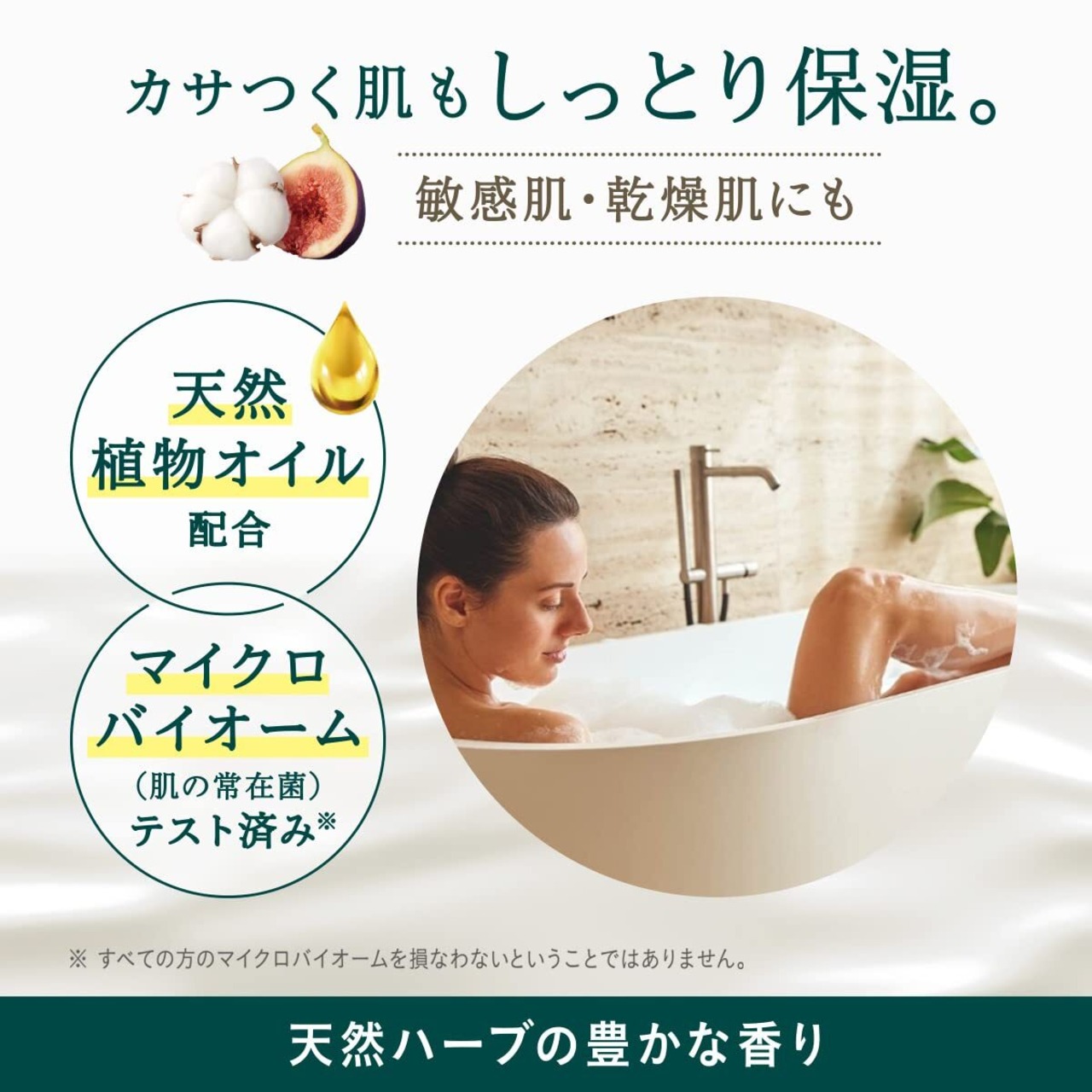 安心してご使用いただける、厳選された天然成分を使用しています。敏感肌の方でも心地よくお使いいただけるように設計されており、毎日のバスタイムをより特別なものにしてくれます。