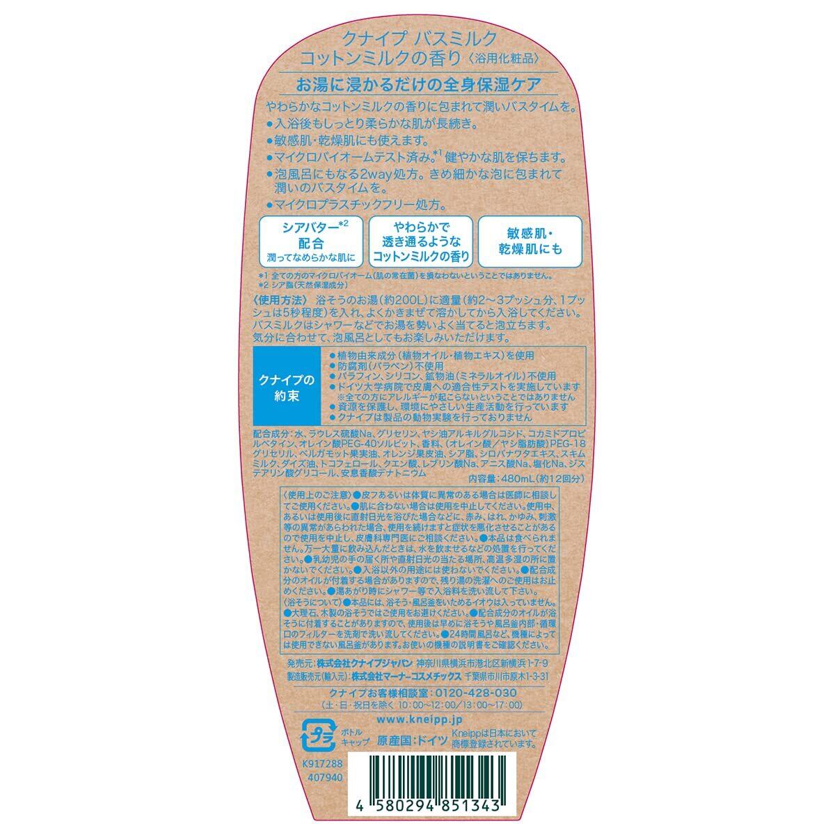 ◆クナイプ(Kneipp) バスミルク コットンミルクの香り 480mL◆