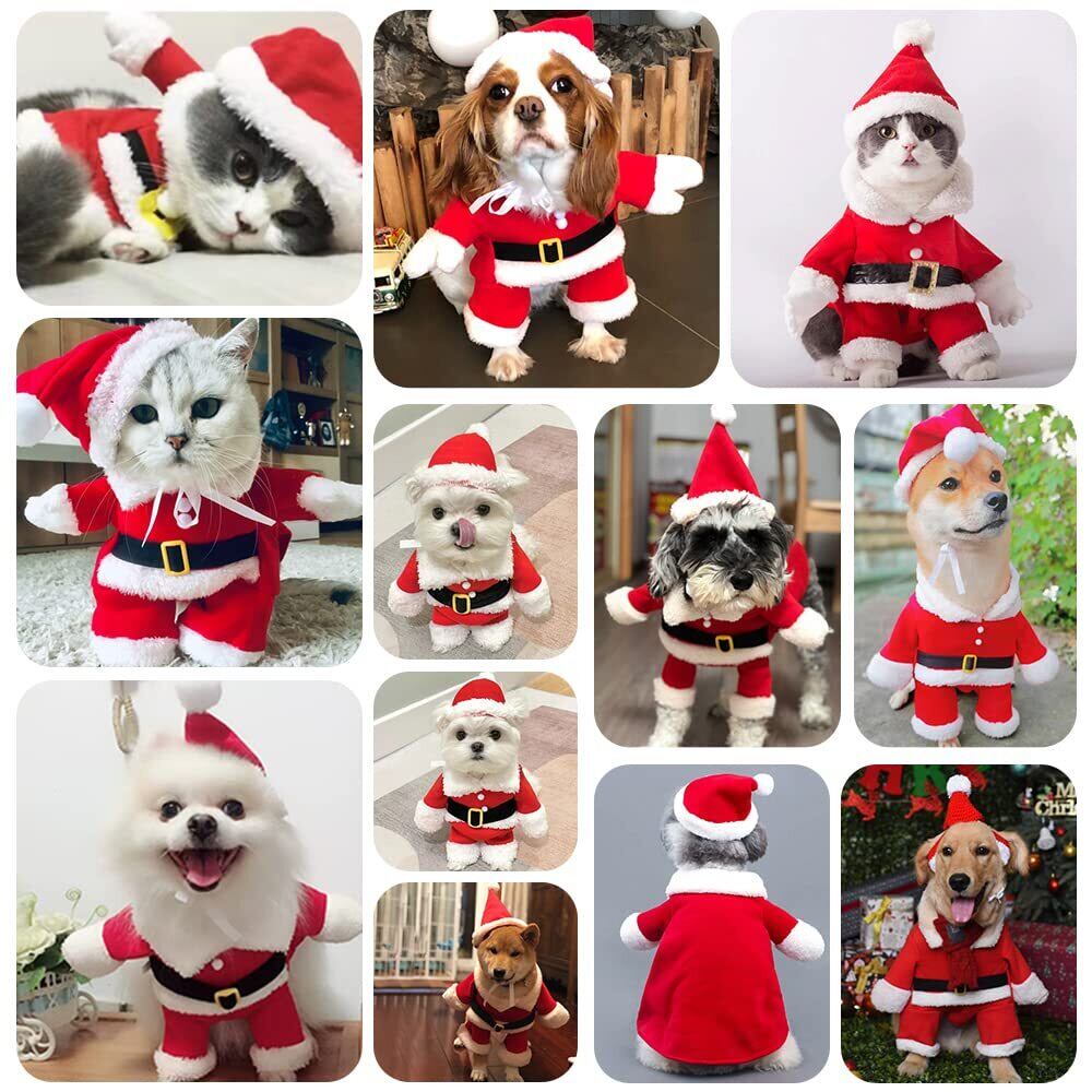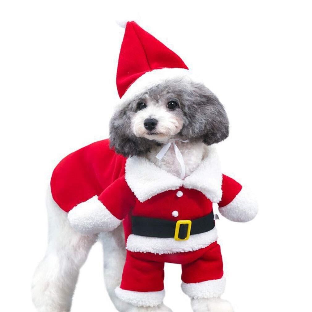 ペットウェア 犬猫用 クリスマス サンタさん コスプレ 猫 犬用 コスチューム 帽子付き チワワ 変身服 冬服 暖かい ふわふわ 防寒 コート サンタクロース 小型犬/中型犬に対応 赤 レッド (XL)