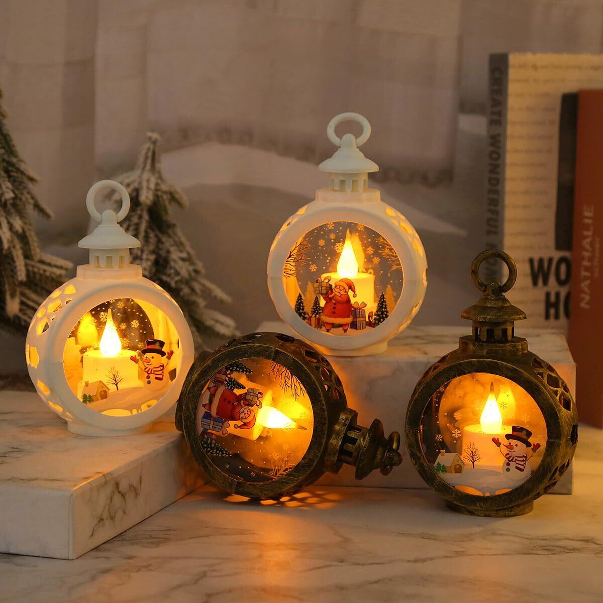 サンタクロースとスノーマン、クリスマス定番のデザインランタン、クリスマス装飾用最適です。クリスマス雰囲気溢れさせます。