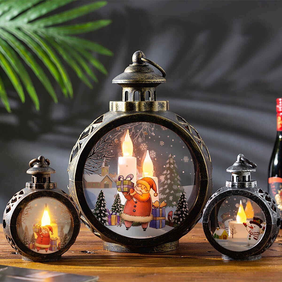 クリスマス 飾り LEDライト ランタン クリスマス キャンドルライト 卓上 置物 サンタクロース 雪だるま 玄関 窓 飾り 提灯 クリスマスグッズ ランプ 飾り付け christmas decoration (こげ茶、Sサイズ、2個セット)