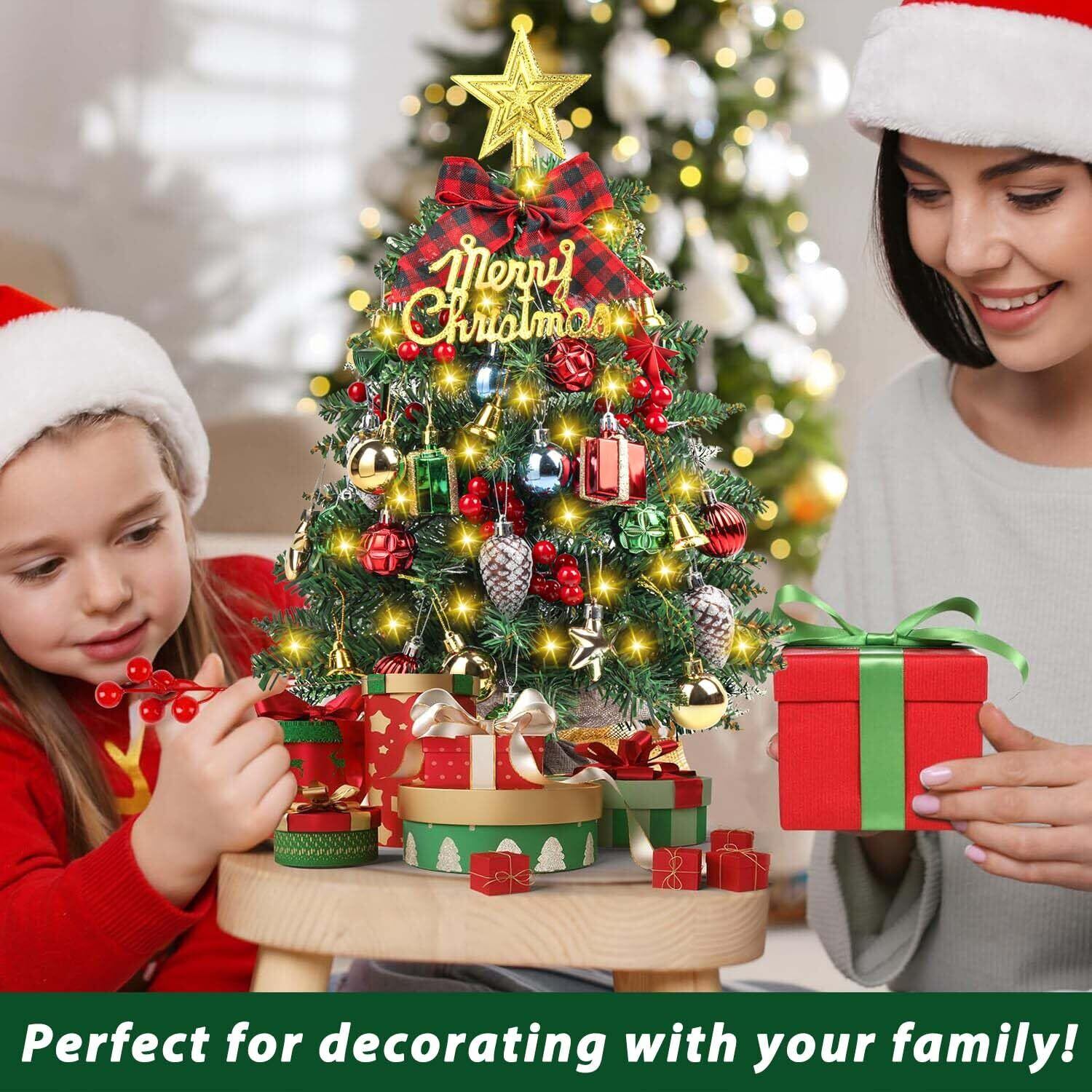 ◆クリスマスツリー オーナメント付き LED セット SVNVIOZ グリーン ツリー 50cm ゴールドとレッド 卓上 ミニクリスマスツリー おしゃれ 北欧 高級 リアル 高濃密度 組立簡単◆