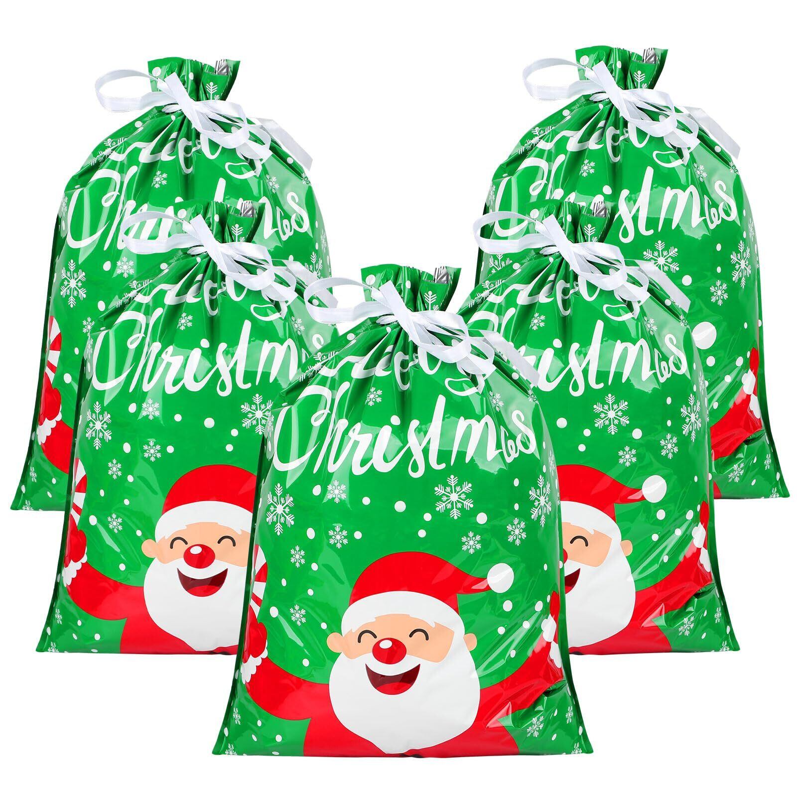 CINECE クリスマス ラッピング 袋 包装袋 リボン付き パーテイー用 グリーティングバッグ ロープ プレゼント用 5枚 44x60cm グリーン